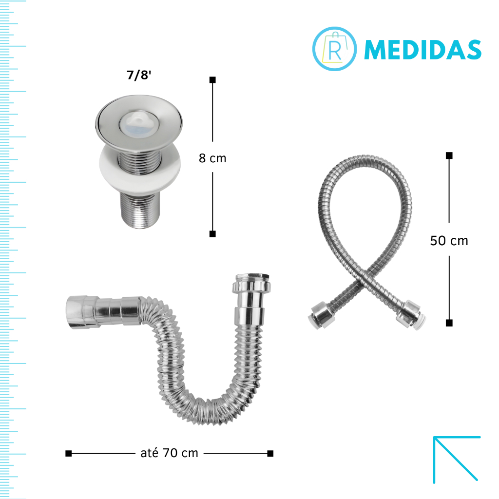 | Kit Válvula Lavatório 7/8 ABS CR + Sifão Universal Cromado + Engate... este produto | R$ 41,99 | 62% | 4.6/5 | 16 |