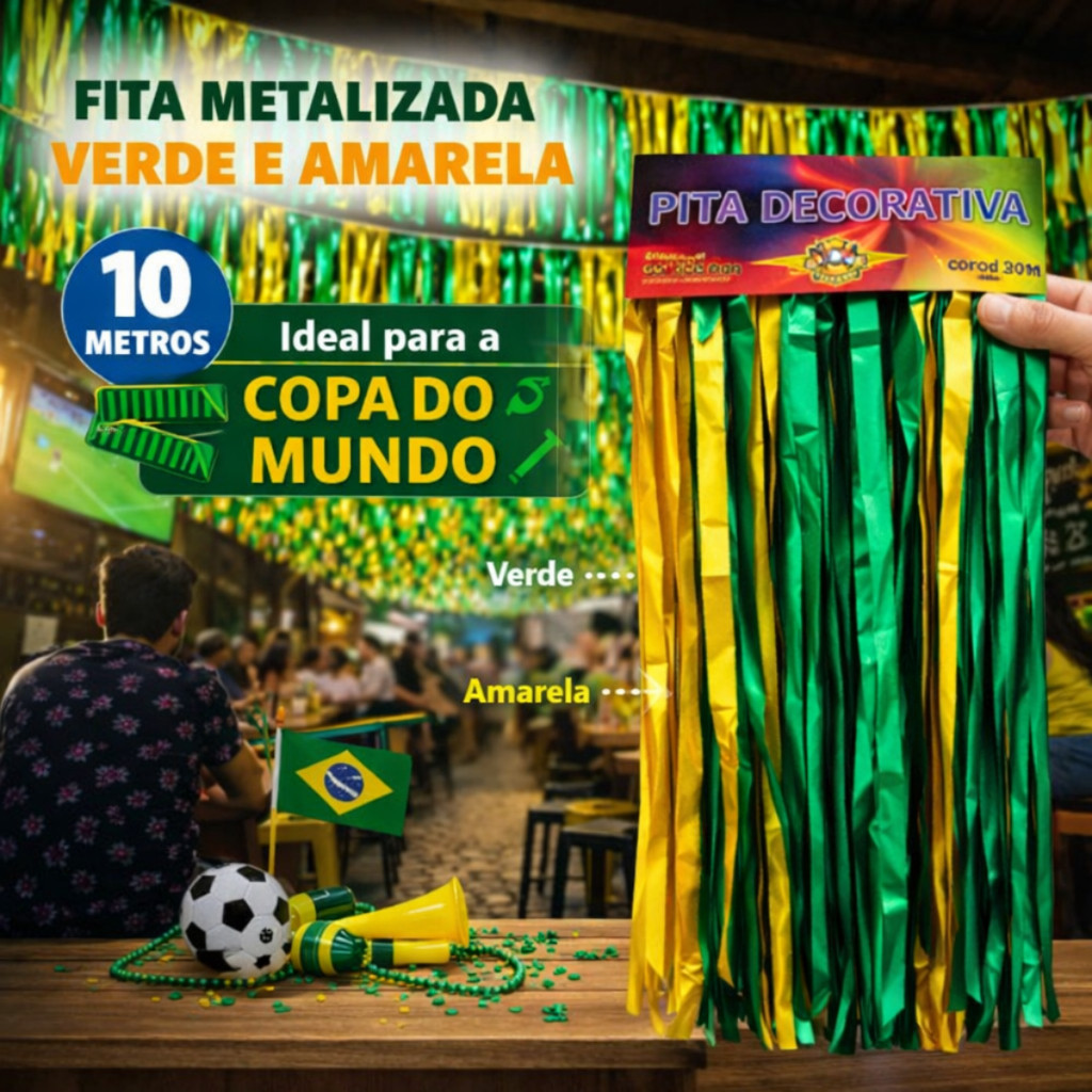 | Kit Varal De Fitas Verde E Amarelo Decoração Rua Copa do Mundo 2026 este produto | R$ 16,90 | 43% | 5.0/5 | 18 |