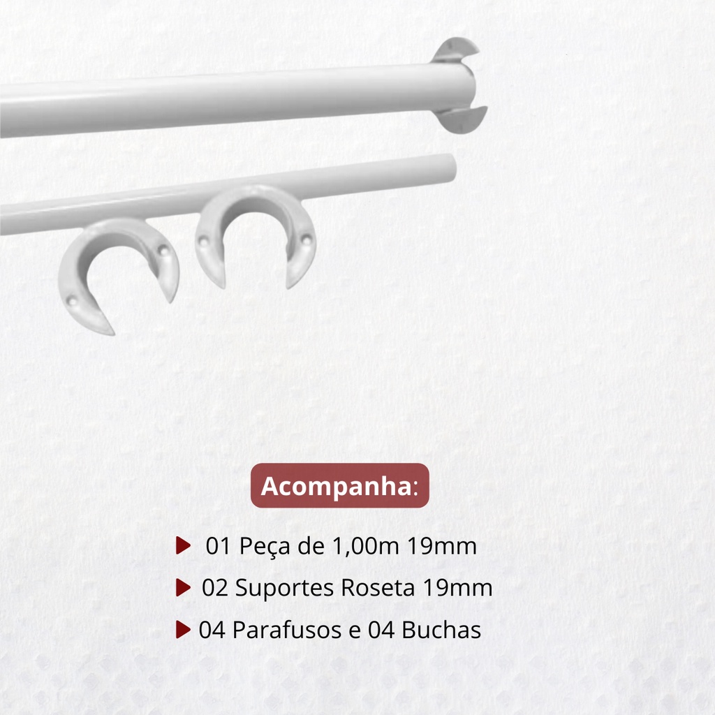 KIT VARÃO ROSETA DE AÇO 1,00 METRO 19MM COM PINTURA ELETROSTÁTICA