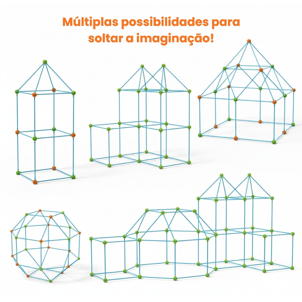 O anúncio contém: 01 Kit Varetas Montagem De Cabana Tenda Infantil 87 Peças Brinq Kids. Esse Kit de varetas para montagem de Cabana da marca Brinq Kids, com 87 peças, estimula a criatividade ao permitir montar cabanas, túneis e diversas estruturas, desenvolvendo coordenação motora, raciocínio lógico e autonomia. As peças leves e seguras facilitam a montagem pela própria criança, promovendo brincadeiras cooperativas e de faz de conta. Versátil e totalmente reconfigurável, garante horas de diversão longe das telas, criando um espaço confortável e estimulante para brincar, ler ou descansar. Brincadeira Cooperativa: Pode ser montado junto com amigos ou familiares, incentivando interação e trabalho em equipe. Versátil e Reconfigurável: A estrutura pode ser montada em várias formas diferentes, sempre criando uma nova brincadeira. Estimula o Faz de Conta: Depois de montado, vira cabana, nave espacial, castelo, casa, tenda… perfeito para histórias e aventuras. Leve e Fácil de Montar: As peças são leves e seguras, permitindo que a própria criança participe da montagem. Ajuda no Desenvolvimento Sensorial: Combinação de cores, texturas e formas estimulam os sentidos. Cria um Espaço Seguro e Confortável: A criança pode ler, descansar ou brincar dentro da cabaninha montada. Informações: Dimensões aproximadas da caixa (AxLxC): 24 cm x 4 cm x 30 cm. Quantidade de peças: 87. Idade recomendada: A partir dos 3 anos. Marca: Brinq Kids. - Produto novo e em estoque. - Todos os produtos têm seguro contra extravio. - As cores do produto podem variar de acordo com o lote de fabricação. - Todas as informações são de responsabilidade do fabricante e/ou fornecedor. Aviso Legal: A cópia total ou parcial desta descrição e/ou fotos é proibida e protegida pela Lei nº 9.610/98 de Direitos Autorais.