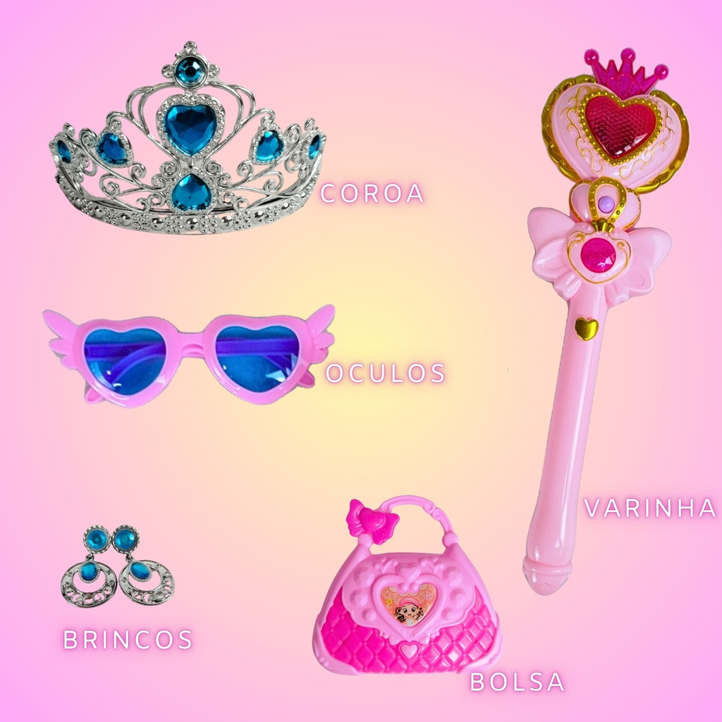 Kit Varinha e Coroa Magica de Princesa Coroa Azul e Acessorios - Castela