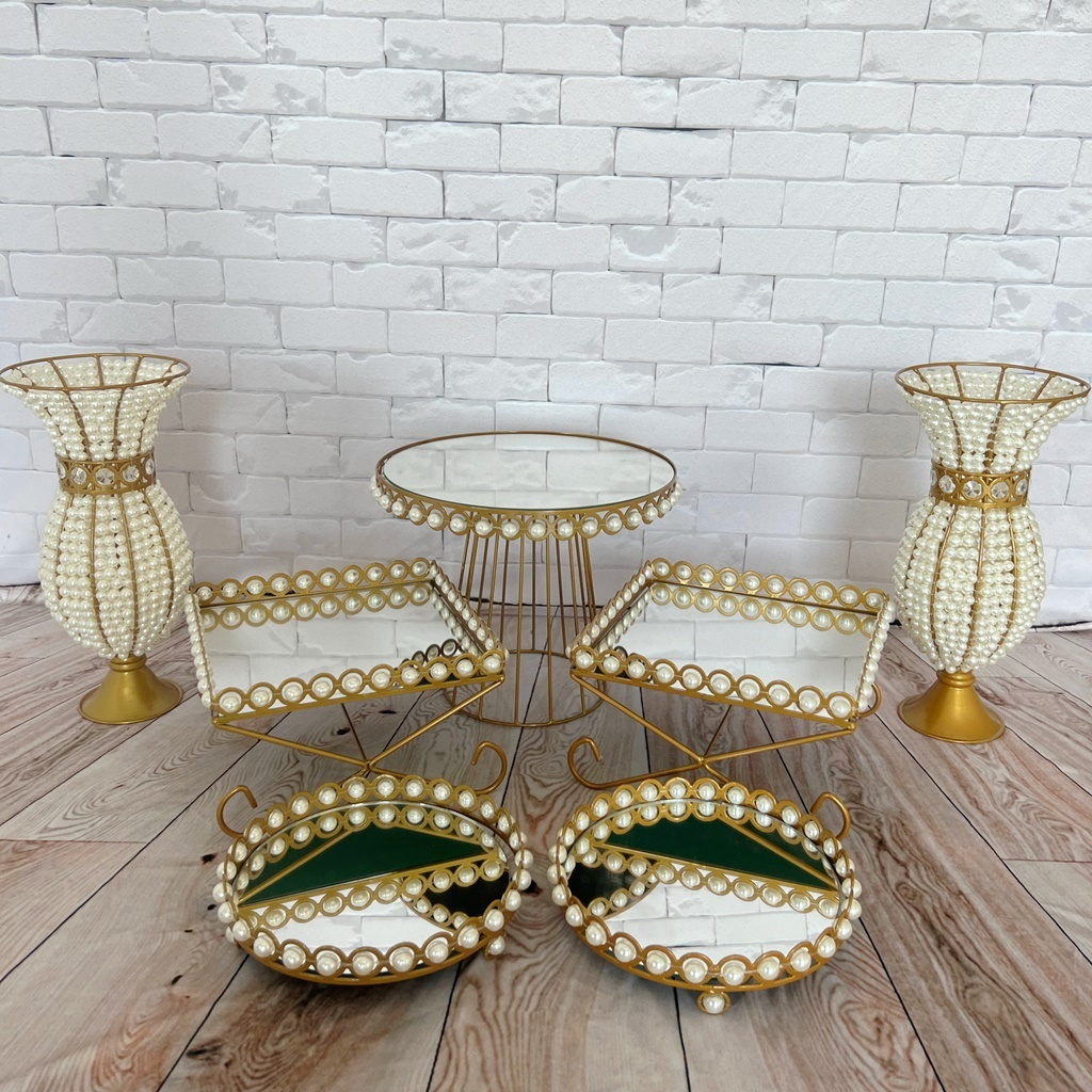 Kit Vaso Jarros Bandeja Boleira Pedraria Perolas + Espelhos 7 Unidades Luxo