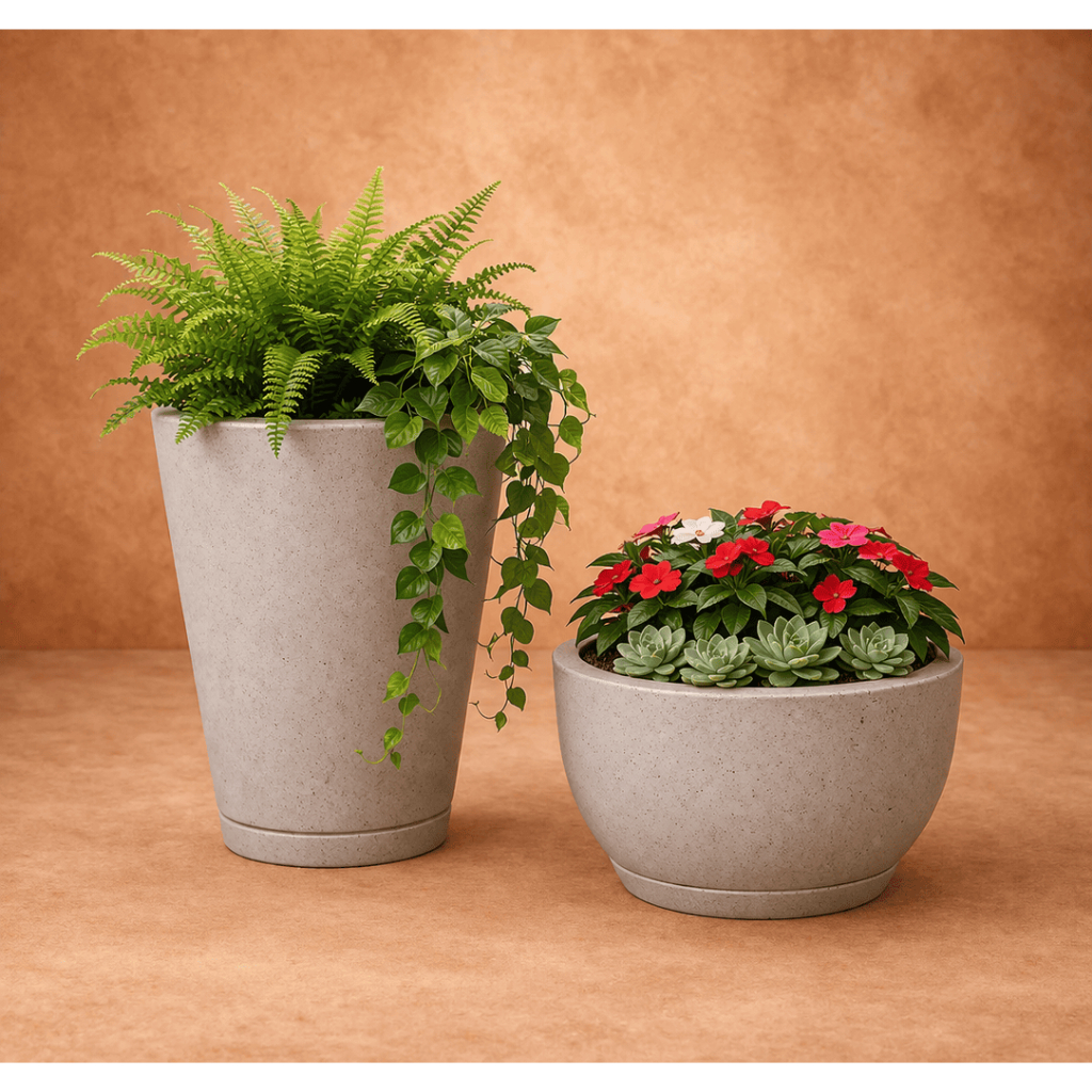 Dê um toque de charme e modernidade ao seu ambiente com o Kit 2 Vasos Polietileno Jardim Moderno Decoração. Com design clean, acabamento uniforme e textura lisa, esses vasos são ideais para quem deseja compor espaços com elegância, leveza e praticidade. Fabricados em polietileno de alta durabilidade, os vasos são resistentes às intempéries, leves e fáceis de transportar. Sua aparência minimalista combina com diversos estilos de decoração, desde ambientes internos como salas e escritórios até áreas externas como varandas e jardins. Dimensões do Kit: Vaso Maior: 28 cm de altura x 22 cm de diâmetro Vaso Menor: 20 cm de altura x 25 cm de diâmetro Combinando funcionalidade e estética, esse conjunto é ideal para quem busca soluções versáteis para valorizar plantas naturais ou artificiais com bom gosto. Perguntas Frequentes (FAQ) 1. Os vasos possuem furo para drenagem? Sim, ambos os vasos possuem furo na base, permitindo o escoamento da água e evitando o acúmulo, ideal para plantas naturais. 2. Posso usar os vasos em áreas externas? Sim! O polietileno é um material resistente ao sol, chuva e variações de temperatura, sendo perfeito para ambientes externos como jardins, sacadas e varandas. 3. O acabamento liso perde a cor com o tempo? O acabamento é durável e projetado para resistir ao uso contínuo. Para manter a boa aparência, recomenda-se limpeza com pano úmido e evitar produtos químicos abrasivos. 4. Os vasos podem ser usados com plantas artificiais? Sim. O kit é ideal tanto para plantas naturais quanto artificiais, permitindo criar arranjos decorativos com facilidade e estilo. 5. Os vasos são pesados? Não. Por serem de polietileno, os vasos são extremamente leves, mesmo quando preenchidos, o que facilita o transporte e a reorganização dos ambientes.