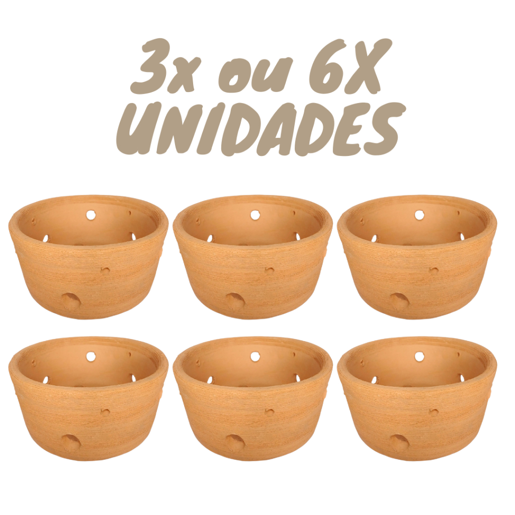 Kit Vasos de Cerâmica Furado para Orquídeas e Suculentas–Resistente e com Drenagem– 3 ou 6 Unidades)
