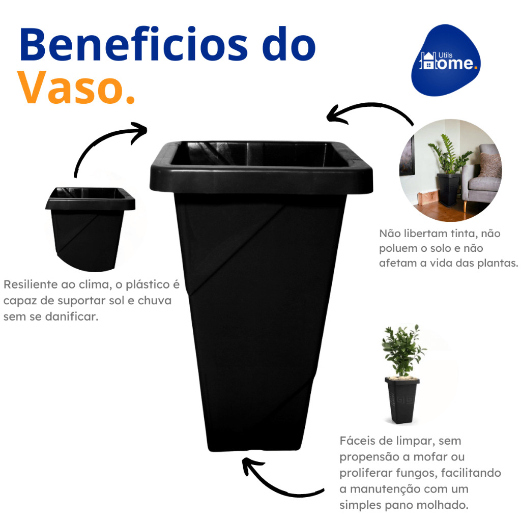 Kit Vasos Grandes 25L Litros Preto Decorativos Plantas Grandes Jardim Decoração