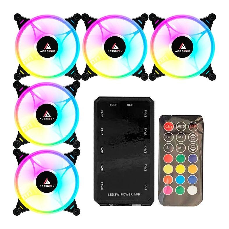 Kit Ventoinha Acegeek Crystal, 5x120mm, ARGB, Preto, AG-CRYSTAL5X1-BK