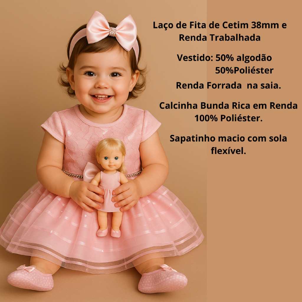 Visual irresistível para ocasiões especiais Imagine sua princesinha encantando a todos com um visual de tirar o fôlego. Este conjunto traz um vestido de renda delicado e elegante, acompanhado de uma calcinha confortável, um laço harmonioso e um sapatinho combinando, pronto para brilhar em festas, batizados, festas de fim de ano, Natal, casamentos e aniversários. Conforto e acabamento de qualidade Cada detalhe foi pensado para valorizar a beleza da pequena sem abrir mão do conforto. Tecido de renda suave, costuras cuidadosas e acabamento refinado garantem leveza e charme que acompanham toda a celebração. Look completo, lembrança para a vida Não é apenas uma roupa — é uma lembrança inesquecível. Fotos e sorrisos ganham destaque com um look que realça a delicadeza e a pureza do bebê. Estoque e disponibilidade Peças com disponibilidade limitada para manter o encanto único. Garanta já este conjunto encantador e transforme qualquer momento em um conto de fadas. Observações de uso Conteúdo composto por vestido de renda, calcinha, laço e sapatinho combinando. Palavras-chave sugeridas para SEO vestidinho renda bebê, conjunto renda bebê menina, calcinha bebê conforto, laço bebê renda, sapatinho bebê renda, look festa bebê, roupa batizado bebê, conjunto princesa bebê, fantasia bebê renda.