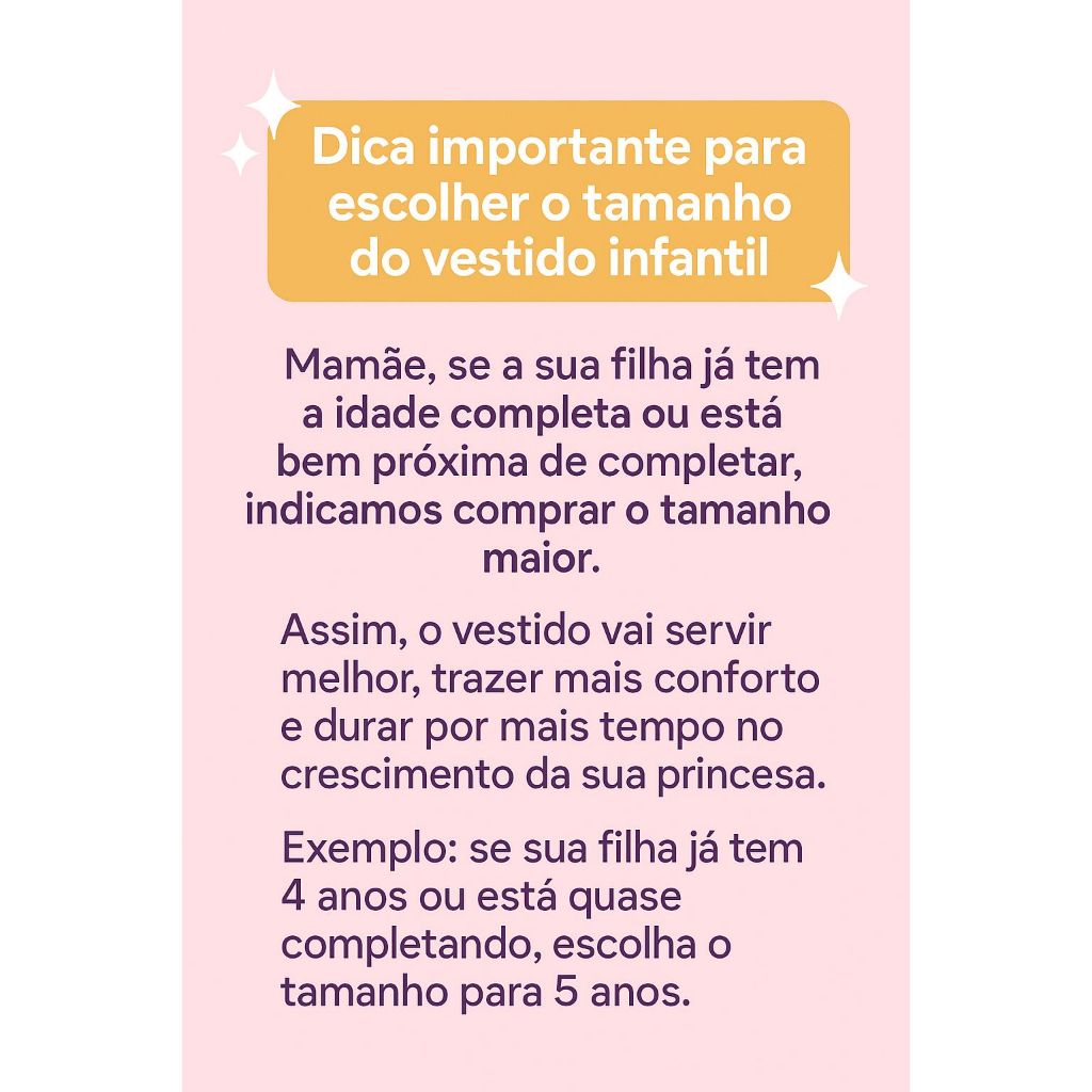 Seja bem vinda a Annary! IMPORTANTE: O KIT É COMPOSTO POR 1 VESTIDO ADULTO TAMANHO UNICO E 1 VESTIDO INFANTIL ( TAMANHO P OU M, VC PODERÁ ESCOLHER NO MOMENTO DA COMPRA) >>>>>>>>>>>>*VESTIDO ADULTO*<<<<<<<<<<<<<<<< • Feito em crepe Santorine (Tecido fresquinho que NÃO amarrota e NÃO encolhe) •TAMANHO ÚNICO Veste do 36 ao 42 O lastex no busto permite que a peça estique bastante •Medidas: 1,40 cm de comprimento (Das alças até o fim do vestido) * A modelo tem 1.70 de altura *>>>>>>>>VESIDO INFANTIL*<<<<<<<<<<<< As peças são feitas e crepe Santorine Não encolhe Na amarrota Temos duas opções de tamanho: 🌼Infantil P Veste 1 a 2 anos de idade 40 cm de comprimento 🌼Infantil M Veste 3 a 4 anos de idade 50 cm de comprimento 🌼Infantil G Veste 5 a 7 anos de idade 60 cm de comprimento *Qualquer dúvida nos chame pelo Chat, será um prazer atende-la!!