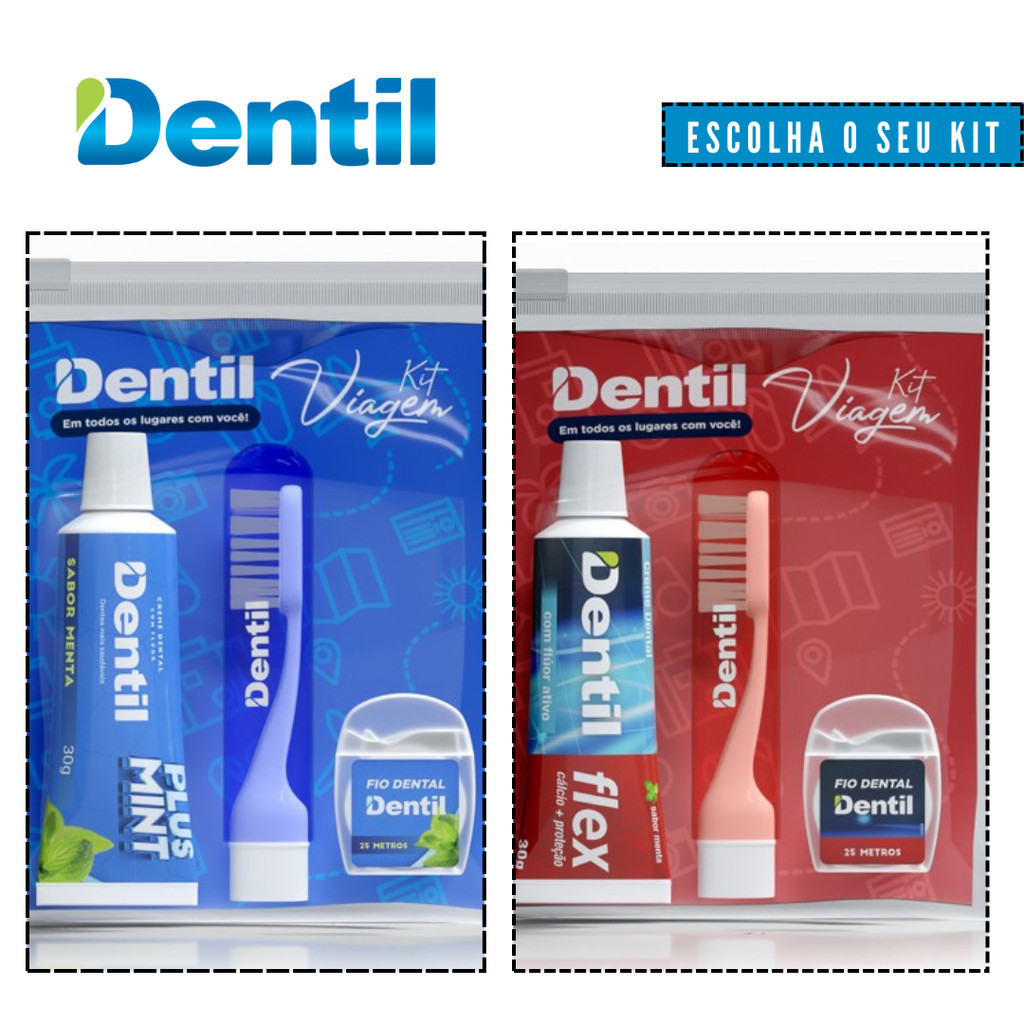 Mesmo na correria do dia-a-dia é necessário manter uma higiene oral adequada. Pensando nisso a Dentil está lançando o Kit Viagem, uma solução completa para saúde bucal. Composto por uma escova de viagem - com cabo que vira tampa e protege as cerdas de bactérias - um fio dental de 25m e um gel de 30gr, acomodados numa necessaire. O kit viagem Dentil é a melhor opção para quem busca praticidade.