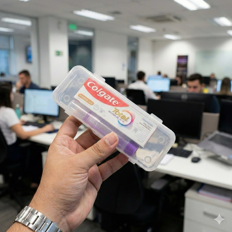 Leve sua saúde bucal para o trabalho com praticidade e estilo! 💼🦷 O Kit Higiene Bucal Decore Outlet foi pensado para quem não para. Chega de escovas soltas na mochila ou pastas grandes ocupando espaço. Nosso kit vem com um estojo exclusivo que organiza e protege seus itens de higiene, garantindo limpeza total onde você estiver. O QUE VOCÊ VAI RECEBER: ✅ 01 Estojo Portátil Rígido: Compacto, resistente e fácil de limpar. Mantém sua escova e pasta protegidas de bactérias da bolsa ou gaveta do escritório. ✅ 01 Escova Dental Portátil: Design inteligente que vira o próprio cabo. Cerdas macias para uma limpeza eficiente. ✅ 01 Creme Dental Colgate Total (30g): O tamanho exato para viagens e para o dia a dia, com a qualidade Colgate que você confia. POR QUE ESTE KIT É PARA VOCÊ? • Higiene no Trabalho: Como mostrado no vídeo, é discreto e fácil de carregar na mão ou no bolso a caminho do banheiro. • Pronto para Viagens: Tamanho permitido em bagagens de mão de aviões. ✈️ • Proteção Extra: O estojo evita que a escova entre em contato com chaves, moedas ou sujeira da bolsa. ESPECIFICAÇÕES: • Marca da Pasta: Colgate (Linha Total 12). • Peso Líquido: 30g. • Cor do Estojo: Transparente (fácil visualização). 🚚 ENVIO IMEDIATO - DECORE OUTLET: Produto em estoque pronto para despachar. Comprando agora, agilizamos o envio para você não ficar sem sua higiene diária. Garanta seu kit agora e tenha um sorriso saudável em qualquer lugar! Equipe Decore Outlet