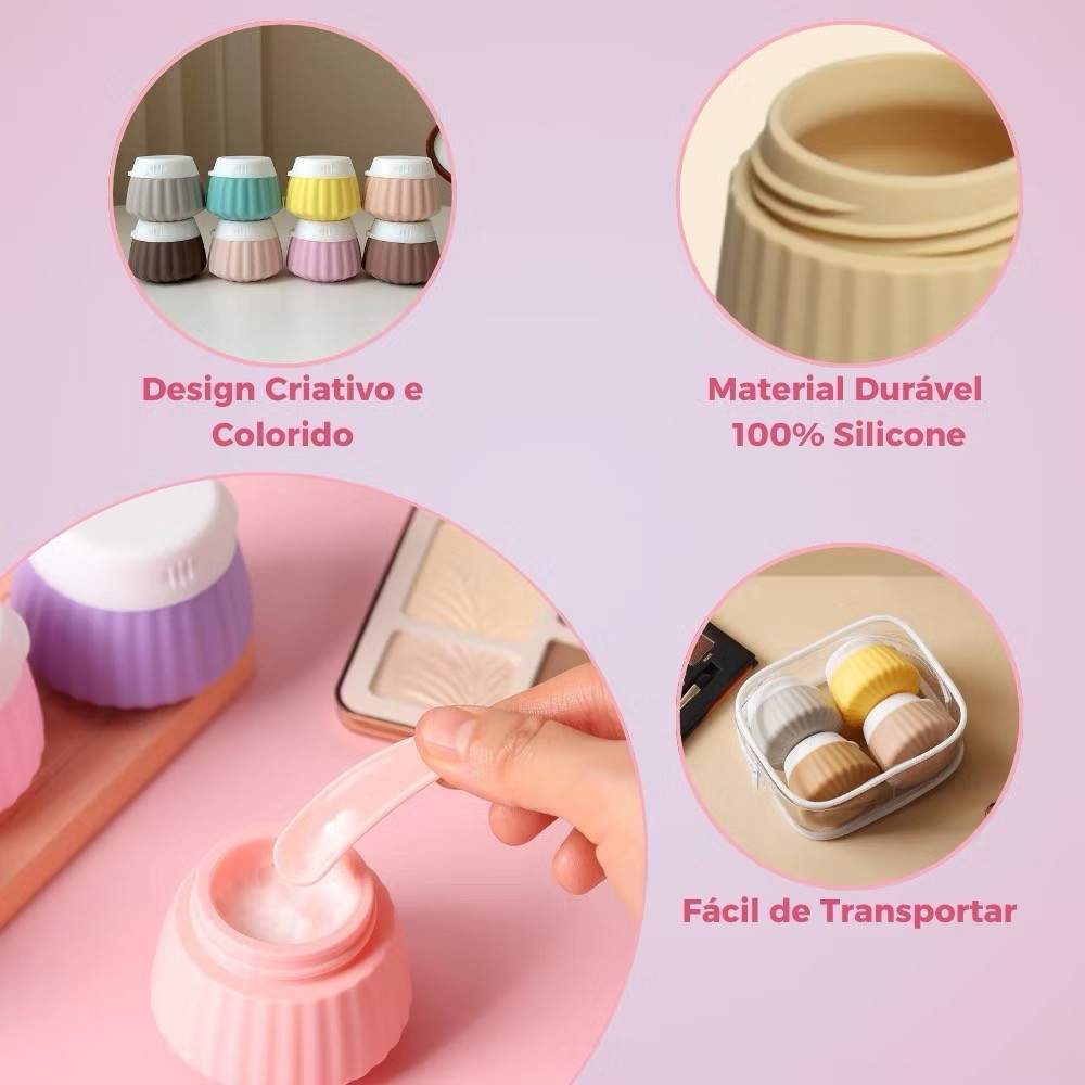 Kit Viagem Frascos Potes Premium de Silicone 40 ml C/ Espátula – Para Creme, Shampoo e Cosméticos