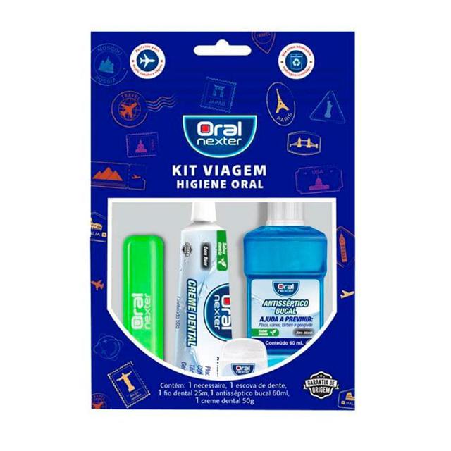 Kit Viagem Oral Nexter – Higiene Bucal Completa em Qualquer Lugar Garanta uma higiene oral completa onde estiver com o Kit Viagem Oral Nexter, ideal para viagens, trabalho, academia e rotina fora de casa. O kit contém tudo o que você precisa para manter seu sorriso limpo e saudável, com praticidade e eficiência. Conteúdo do Kit: 1 Necessaire compacta e reutilizável 1 Escova de dente com capa protetora 1 Fio dental 25m 1 Antisséptico bucal 60ml (sem álcool, sabor menta) 1 Creme dental 50g (com flúor, sabor menta) Confira também outros produtos de Oral Nexter: - Escovas dental Oral Nexter - Fio e fita dental Oral Nexter - Antisséptico bucal Oral Nexter Compre agora o Kit Viagem Oral Nexter e leve praticidade, proteção e frescor com você onde for! Ideal para quem busca conveniência sem abrir mão da saúde bucal.