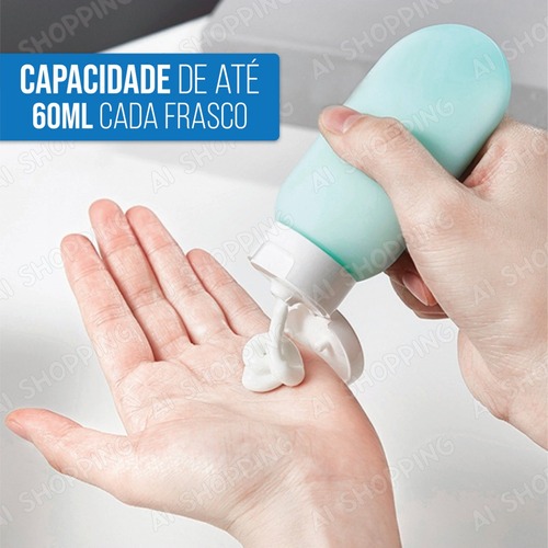 Kit Viagem Porta Shampoo Mini Frasco Pote Creme 3 Peças 60ml
