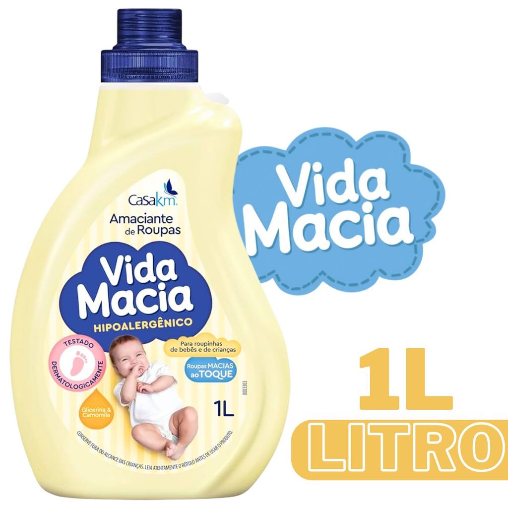 CONTEÚDO QUE SERÁ ENVIADO: 1 - Vida Macia Lava Roupas Hipoalergênico 1 litro. 1 - Vida Macia Amaciante de Roupas Hipoalergênico 1 litro. ________________________________________________________________________ Envio em 24hrs (Postagem Rápida) Produto em Estoque ( Pronta Entrega ) Compra segura *Produto acompanha Nota Fiscal de consumidor através dos dados cadastrados na sua conta.* (Enviamos com a maior data de validade possível presente em nosso estoque). Sobre a linha Lava Roupas Vida Macia CasaKm para Bebês: O lava-roupas líquido Vida Macia foi especialmente desenvolvido para o cuidado com as roupinhas dos bebês. Limpa e preserva as cores dos tecidos, respeitando sempre a delicadeza da pele dos bebês. Sobre a linha Amaciante Vida Macia CasaKm para Bebês: Amaciante de roupas desenvolvido para roupinhas de Bebê hipoalergênico, testado dermalogicamente para não agredir a pele do seu Bebê, com Glicerina e Camomila. CARACTERÍSTICAS DO PRODUTO: -Hipoalergênico. -Formula balanceada. -Limpa sem agredir a roupa. -Testado Dermatologicamente. -Perfume Suave. -Tampa dosadora -Não testado em animais SOBRE O LAVA ROUPAS: Marca: Vida Macia. Fabricante: CasaKm. Volume: 1 litro cada. Tipo: Lava Roupas. Linha: Baby. SOBRE O AMCIANTE ROUPAS: Marca: Vida Macia. Fabricante: CasaKm. Volume: 1 litro cada. Tipo: Amaciante de Roupas. Linha: Baby. CONTEÚDO QUE SERÁ ENVIADO: 1 - Vida Macia Lava Roupas Hipoalergênico 1 litro. 1 - Vida Macia Amaciante de Roupas Hipoalergênico 1 litro.