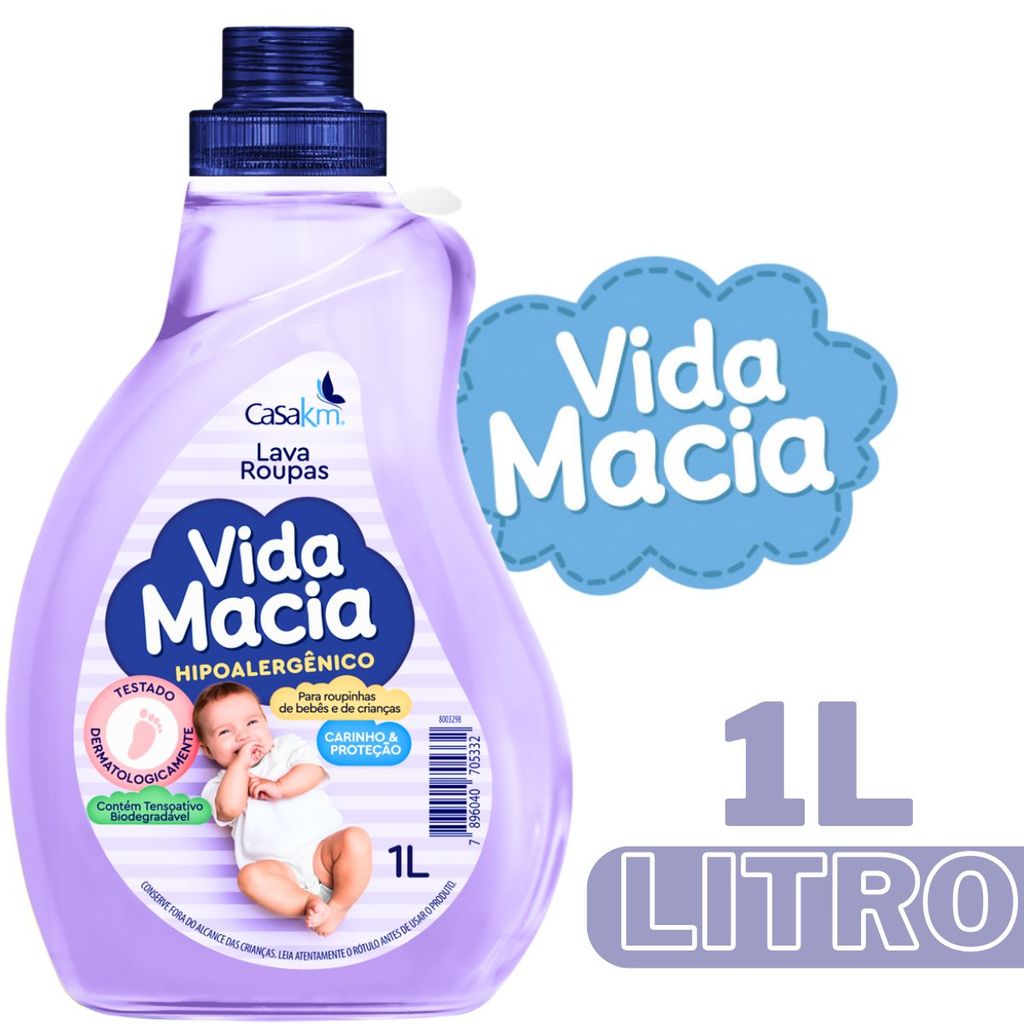 CONTEÚDO QUE SERÁ ENVIADO: 1 - Vida Macia Lava Roupas Hipoalergênico 1 litro. 1 - Vida Macia Amaciante de Roupas Hipoalergênico 1 litro. ________________________________________________________________________ Envio em 24hrs (Postagem Rápida) Produto em Estoque ( Pronta Entrega ) Compra segura *Produto acompanha Nota Fiscal de consumidor através dos dados cadastrados na sua conta.* (Enviamos com a maior data de validade possível presente em nosso estoque). Sobre a linha Lava Roupas Vida Macia CasaKm para Bebês: O lava-roupas líquido Vida Macia foi especialmente desenvolvido para o cuidado com as roupinhas dos bebês. Limpa e preserva as cores dos tecidos, respeitando sempre a delicadeza da pele dos bebês. Sobre a linha Amaciante Vida Macia CasaKm para Bebês: Amaciante de roupas desenvolvido para roupinhas de Bebê hipoalergênico, testado dermalogicamente para não agredir a pele do seu Bebê, com Glicerina e Camomila. CARACTERÍSTICAS DO PRODUTO: -Hipoalergênico. -Formula balanceada. -Limpa sem agredir a roupa. -Testado Dermatologicamente. -Perfume Suave. -Tampa dosadora -Não testado em animais SOBRE O LAVA ROUPAS: Marca: Vida Macia. Fabricante: CasaKm. Volume: 1 litro cada. Tipo: Lava Roupas. Linha: Baby. SOBRE O AMCIANTE ROUPAS: Marca: Vida Macia. Fabricante: CasaKm. Volume: 1 litro cada. Tipo: Amaciante de Roupas. Linha: Baby. CONTEÚDO QUE SERÁ ENVIADO: 1 - Vida Macia Lava Roupas Hipoalergênico 1 litro. 1 - Vida Macia Amaciante de Roupas Hipoalergênico 1 litro.
