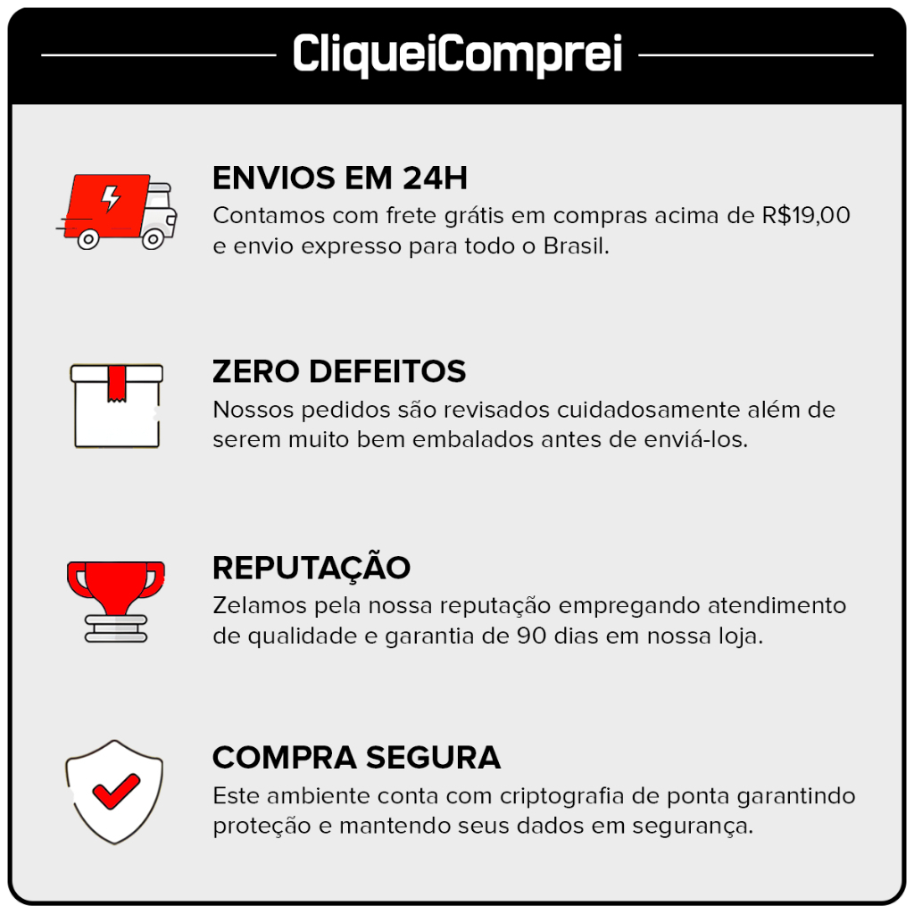 - Vendido por loja bem avaliada (Cliquei_Comprei — 4.9/5)