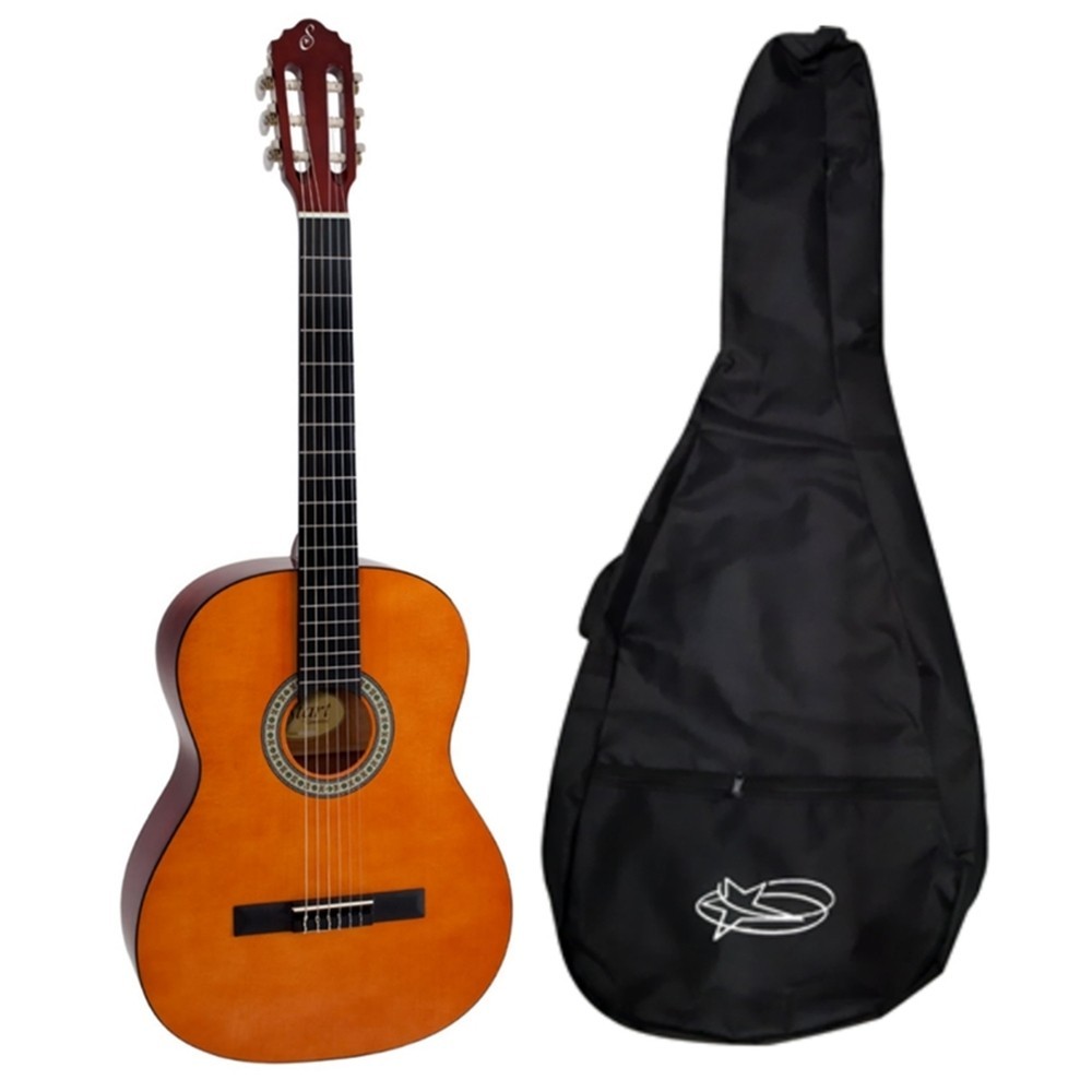 KIT VIOLAO GIANNINI N14 ESTUDO NAILON NATURAL COM CAPA A START é a nova série de violões da Giannini. O Giannini Start N14 é um violão leve macio para tocar confortável e de boa qualidade. Um violão ideal para quem quer aprender a tocar e vai encarar horas de estudo do instrumento. O N14 foi produzido pela Giannini pensando no músico iniciante um violão preparado para dar todo o suporte ao aprendizado de violão. O Start chega para complementar a já conhecida linha estudante GCX15. DESCRIÇÃO DA CAPA: A capa Starlight p/ violão é ideal para proteger seu instrumento de batidas e quedas. Conta com uma bolsa externa para você carregar seus acessórios e é ideal para músicos que precisam se locomover com o instrumento. ESPECIFICAÇÕES DO VIOLÃO: Tampo: Basswood Lateral e Fundo: Basswood Braço: Okoume com tensor bi-direcional Escala: Sabina maciça Comprimento da escala: 650 mm (25,6”) Cavalete: Sabina maciço Tarraxa: Pino grosso niqueladas, 3+3 Pestana: ABS na cor marfim Largura da pestana: 48 mm (1,9”) Rastilho: ABS na cor marfim Largura do rastilho: 80 mm (3,15”) Acabamento: Verniz brilhante Cordas: Náilon tensão pesada. Recomendamos para a troca utilizar as cordas Giannini Clássico GENWPA Pesada, Giannini Titanium GENWTA Pesada Headstock: Letra “S” holográfica, placa adicional em basswood Acompanha: Chave de ajuste do tensor SKU: 5699 - N14 NATURAL SKU: 29618 - CAPA STARLIGHT