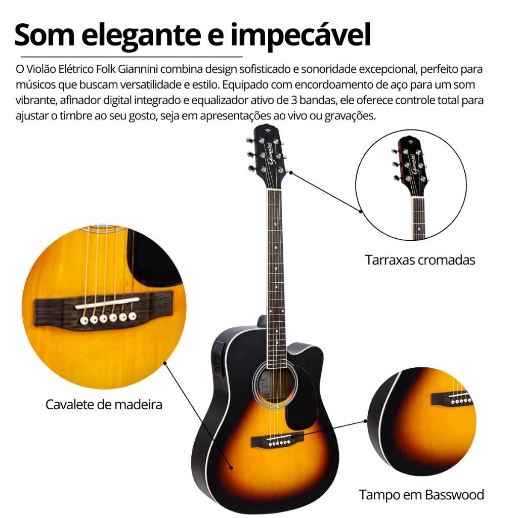 Kit Violao Giannini Elétrico Folk Gd1 Gdc1 Eq + Acessórios
