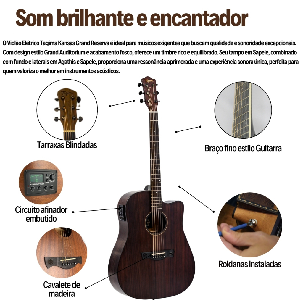 Kit Violão Tagima Kansas Elétrico Latin America Gran Reserva + Acessórios