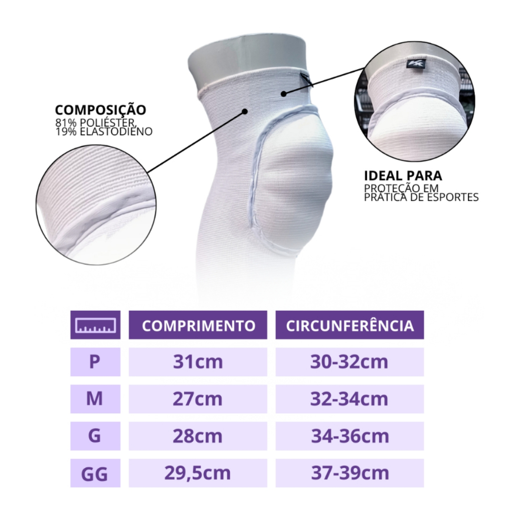 Kit Vôlei Kanxa – Proteção e Conforto para Sua Performance O Kit Vôlei Kanxa é a combinação perfeita para quem busca proteção, conforto e desempenho nas quadras. Composto por 1 Manguito Curto Kanxa e 1 Par de Joelheiras Kanxa, esse kit oferece suporte essencial durante a prática de esportes de alto impacto, como o vôlei. 1. Manguito Curto Kanxa Composição: 95% poliamida, 5% elastano. Função: Compressão para proteção da musculatura, melhorando a circulação sanguínea e prevenindo contusões. Ideal para: Vôlei, ciclismo, corrida, basquete e futebol. Benefícios: Maior respirabilidade e bem-estar durante o uso. Medidas aproximadas: P/M: 24 x 6,5 cm G/GG: 27 x 8,5 cm 2. Joelheiras Kanxa Composição: 81% poliéster, 19% elastodieno. Função: Protege a região do joelho, amortecendo impactos e prevenindo lesões. Ideal para: Esportes de alto impacto como o vôlei. Medidas aproximadas: P: 30-32 cm M: 32-34 cm G: 34-36 cm Vantagens: Durabilidade: Produto fabricado no Brasil com alta qualidade e resistência. Garantia: Garantia contra defeitos de fabricação. Facilidade de Uso: Instruções de lavagem para maior durabilidade. Autorização Oficial: Produto original, com nota fiscal de fábrica. Tamanhos Disponíveis: Tamanho P: Manguito P/M e Joelheira P. Tamanho M: Manguito M e Joelheira M. Tamanho G: Manguito G e Joelheira G. Tamanho GG: Manguito G e Joelheira GG. Compra Segura na Sloth: Entrega rápida: Seu pedido será separado e postado em até 24 horas após confirmação de pagamento. Devolução e Troca: 30 dias para devoluções em caso de defeito de fabricação. Após esse período, entre em contato diretamente com o fabricante. Desistência: 7 dias corridos para desistir da compra após o recebimento do produto. Adquira o Kit Vôlei Kanxa e tenha a proteção e o conforto necessários para suas atividades esportivas!
