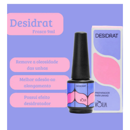 ATENÇÃO JA ESTAMOS COM A EMBALAGEM NOVA DA VOLIA DOS PREPARADORESS NAO TEMOS MAIS EMBARAGEM ANTIGA ENVIO EMETIADO O Desidrat Vòlia (9 mL) é um desidratador que irá remover as impurezas e a oleosidade das unhas e restaurá-las ao seu Ph ideal. Sua secagem é instantânea! Use antes do Primer Vòlia para melhorar ainda mais sua adesão e dos géis. Remove Impurezas Remove Oleosidade Restaura ao Ph Ideal Melhor Adesão Efeito Desidratador Secagem Instantânea O Primer Nail Bonder Vòlia (10ml) retira a oleosidade das unhas deixando-as prontas para receber o alongamento. Cria goma para maior aderência do gel. Sua fórmula inovadora, sem ácido, evita a agressão das unhas naturais, tornando-se imprescindível para evitar descolamentos e infiltrações. Elimina a oleosidade superficial e equilibra o PH das unhas naturais Maior fixação para alongamentos Fórmula sem ácido Não agride as unhas ou a pele Seca sem cabine Frasco de 10ml com pincel