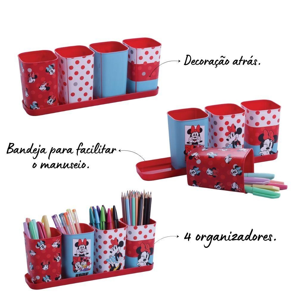 Kit Volta às Aulas Pasta Escolar e Organizador de Mesa Minnie Plasútil