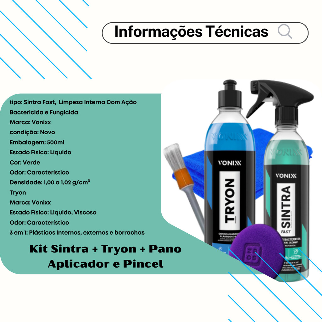 Kit Vonixx Para Limpeza Interna Sintra Fast + Tryon + Aplicador+Pano e Pincel