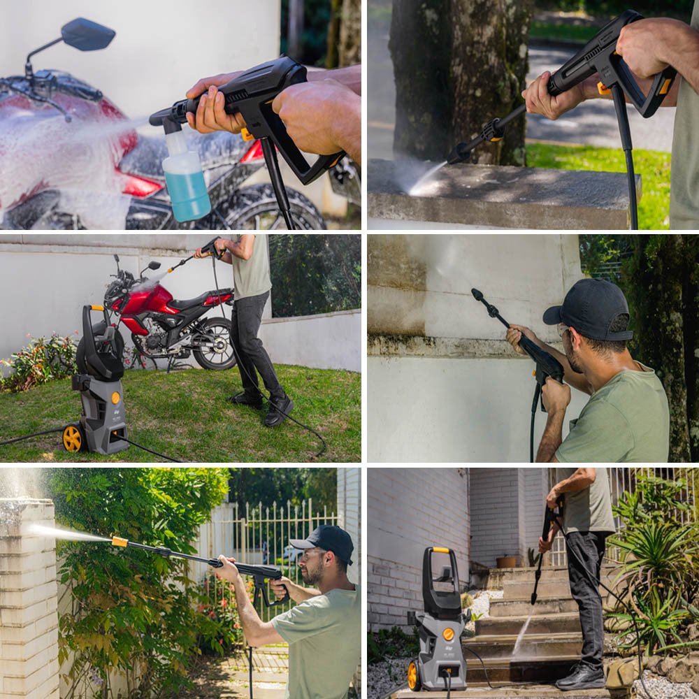 Kit Wap Lavadora Alta Pressão Potente 1800W Rodas E Aspirador Pó e Água Inox 12 Litros