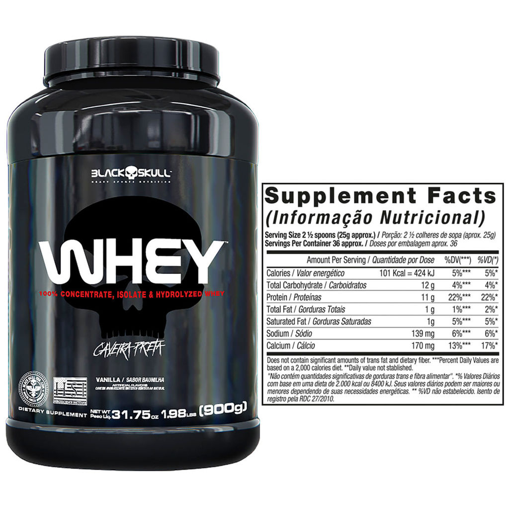 KIT WHEY BLACKSKULL™: Dose Dupla para Ganhos Máximos! Este kit de suplementos contém:1 Refil de Whey Protein (900g)1 Pote de Whey Protein (900g) Potencialize seus resultados com o Kit Whey BLACKSKULL™, o combo perfeito para quem leva a sério a performance e a recuperação muscular. Com um total de 1,8kg de proteína de alta qualidade, este kit oferece a dose que você precisa para alcançar seus objetivos. WHEY BLACKSKULL™, a sua melhor escolha para otimizar o desempenho e a recuperação muscular. Nossa fórmula avançada, conhecida como 3W, une o poder dos três tipos de whey protein Concentrado, Isolado e Hidrolisado em um único produto. Essa combinação exclusiva garante uma absorção completa e eficiente, proporcionando nutrição constante e de alta qualidade para seus músculos. Ideal para atletas e praticantes de atividades físicas que buscam o máximo em performance e resultados, o WHEY™ 3W é mais do que um suplemento; é a garantia de que você está dando o melhor para o seu corpo. Principais Benefícios:WHEY PROTEIN CONCENTRADO (WPC): Rico em proteínas de alta qualidade e com um perfil nutricional completo, o WPC é a base do nosso produto. Ele fornece os aminoácidos essenciais que seu corpo precisa para construir e reparar tecidos musculares.WHEY PROTEIN ISOLADO (WPI): Passa por um processo de microfiltração que remove a maior parte da lactose e gordura. Com mais de 90% de concentração de proteína, é a escolha perfeita para quem busca o máximo de proteína com o mínimo de carboidratos.WHEY PROTEIN HIDROLISADO (WPH): A proteína é pré-digerida, com suas moléculas quebradas em peptídeos menores. Isso acelera a entrega de nutrientes para seus músculos, ideal para o pós-treino imediato, quando a recuperação é mais crítica. BLACKSKULL USA™ WHEY™: A Proteína Completa para Seus Resultados
