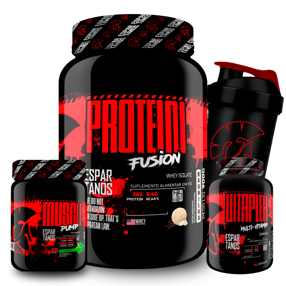 🛡️⚔️ Kit Suplementos Espartanos ⚔️🛡️ Apresentamos o nosso Kit Suplementos Espartanos, uma combinação poderosa para elevar sua performance e atingir resultados excepcionais. Este kit exclusivo inclui: ✅ Whey Protein Fusion Isolado 900g: Nosso Whey Protein Fusion Isolado é a escolha perfeita para uma fonte pura e poderosa de proteínas de alta qualidade. Cada unidade contém 900g do produto, que é produzido através de um processo avançado de filtragem para garantir um whey protein isolado com o mais alto grau de pureza. Com aminoácidos essenciais em abundância, o Whey Protein Fusion Isolado contribui para a recuperação muscular, o desenvolvimento e a manutenção da massa magra. Aproveite o poder do whey protein FUSION! Sabores disponíveis: Baunilha, Chocolate e Morango 🍦🍫🍓 ✅ Muscle Pump Limão 300g: Nosso Pré Treino Muscle Pump sabor limão é o combustível ideal para elevar sua performance nos treinos. Cada unidade contém 300g de pré treino formulado com ingredientes cuidadosamente selecionados para aumentar sua energia, foco e desempenho durante os exercícios. Supere seus limites e alcance o próximo nível de intensidade com o Pré Treino Muscle Pump! 💪🔋🚀 ✅ Multivitamínico Vitaplex 60 cápsulas: Nosso Multivitamínico Vitaplex em cápsulas é um suplemento completo que fornece todas as vitaminas e minerais essenciais para garantir o bom funcionamento do organismo. Cada unidade contém 60 cápsulas que oferecem suporte ao sistema imunológico, saúde cardiovascular, energia e disposição. Tenha certeza de que seu corpo está recebendo os nutrientes necessários para alcançar seus objetivos! 💪💯🍃 ✅ Coqueteleira 600ml: Você receberá uma coqueteleira de 600ml para preparar suas bebidas de forma prática e conveniente. Com essa coqueteleira, você poderá misturar seus suplementos com facilidade, garantindo uma mistura suave e deliciosa. 💦🔄💪 Aproveite agora mesmo o nosso Kit Suplementos Supercharged e impulsione sua jornada de treinos e resultados! 💪💥🔝 Não perca a oportunidade de conquistar o máximo desempenho. Garanta já o seu kit e transforme seu corpo e performance de maneira excepcional! 💪💯🚀 🏭 Direto da fábrica: Garantia de qualidade e autenticidade dos produtos! 📦 Envio rápido e seguro para todo o país! 💥 Aproveite e potencialize seus resultados! * Anvisa: Registro Isento Conforme Resolução Rdc 27 De 06 De Agosto De 2010 Anexo I. * A coqueteleira pode variar de acordo com disponibilidade em estoque * Imagens Ilustrativas