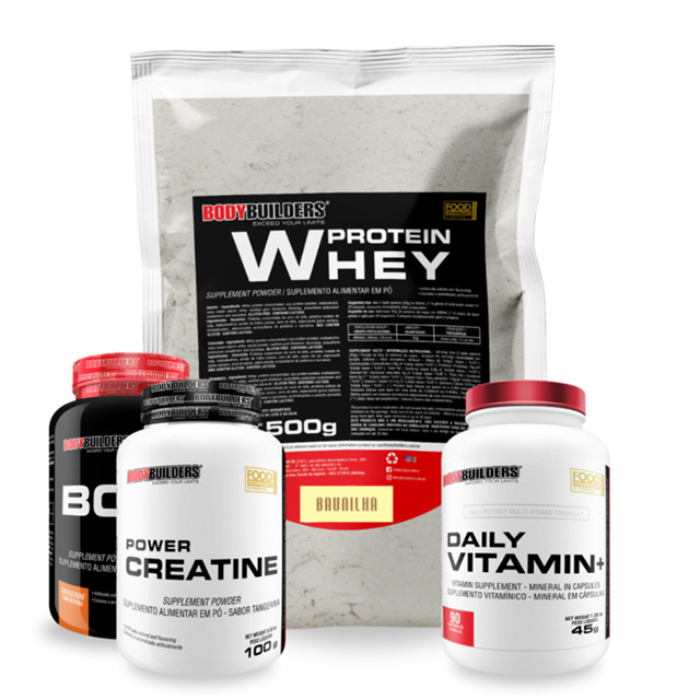 Kit Whey Protein 500g + Power Creatina 100g + BCAA 4,5 100g + Daily Vitamin 90 caps - Bodybuilders