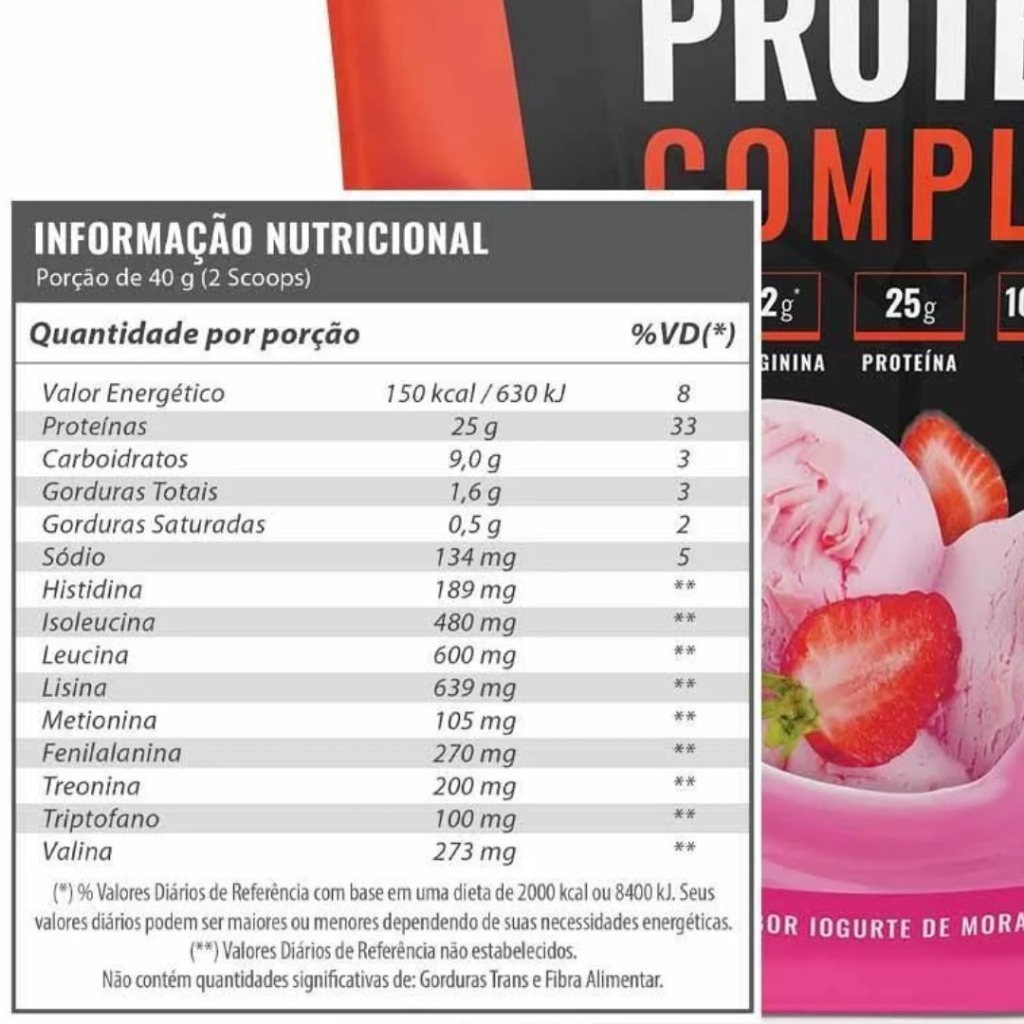 ------------------------------------------------------- WHEY PROTEIN COMPLEX 900G: ------------------------------------------------------- É um suplemento proteico que combina proteínas de alta qualidade disponíveis no mercado. É um complexo de proteínas com diferentes velocidades de absorção, podendo ser usado como um suplemento “Time Release”. Fornece aminoácidos essenciais, principalmente os BCAAs e Arginina, sendo indicado para atletas e praticantes de atividade física que buscam um alto aporte proteico. BENEFICIOS: - Auxilia no aumento de massa magra; - Contém 4,5g de BCAA e Glutamina por porção; - Enriquecido com Arginina (2g por porção); - Mix proteico: Whey Protein Concentrado, Whey Protein Isolado, Whey Protein Hidrolisado, Beef Protein, Albumina e Caseína. INGREDIENTES: Power Protein Complex (Proteína concentrada do soro do leite), Proteína isolada do soro do leite, Proteína hidrolisada do soro do leite, Proteína isolada de soja, Albumina desidratada, Maltodextrina, Colágeno hidrolisado, Proteína hidrolisada da carne (Beef Protein), Caseína, Aromatizantes e Edulcorante Sucralose. SUGESTÃO DE USO: Diluir 2 colheres dosadoras (40 g) em 200ml de água ou bebida de preferência após os treinos ou conforme orientação de um profissional. ---------------------------------------------------------- CREATINA MONOHIDRATADA 300G ---------------------------------------------------------- SUPLEMENTO PARA FORÇA, POTÊNCIA E RECUPERAÇÃO MUSCULAR A creatina é indicada para todos que buscam aumentar a massa muscular magra, a energia e a capacidade de regeneração muscular. Ajuda a reduzir inflamações nas células musculares e a aumentar o volume muscular, sendo a melhor opção para melhorar o desempenho nos treinos. INGREDIENTE: Creatina monohidratada. Não contén glúten.
