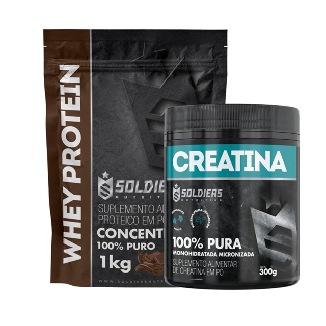 Kit: Whey Protein Concentrado 1Kg + Creatina Monohidratada Pote 300g - 100% Pura Importada - Soldiers Nutrition