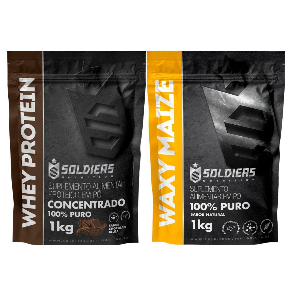 Kit: Whey Protein Concentrado 1kg + Waxy Maize 1kg Soldiers Nutrition Proteína Muscular