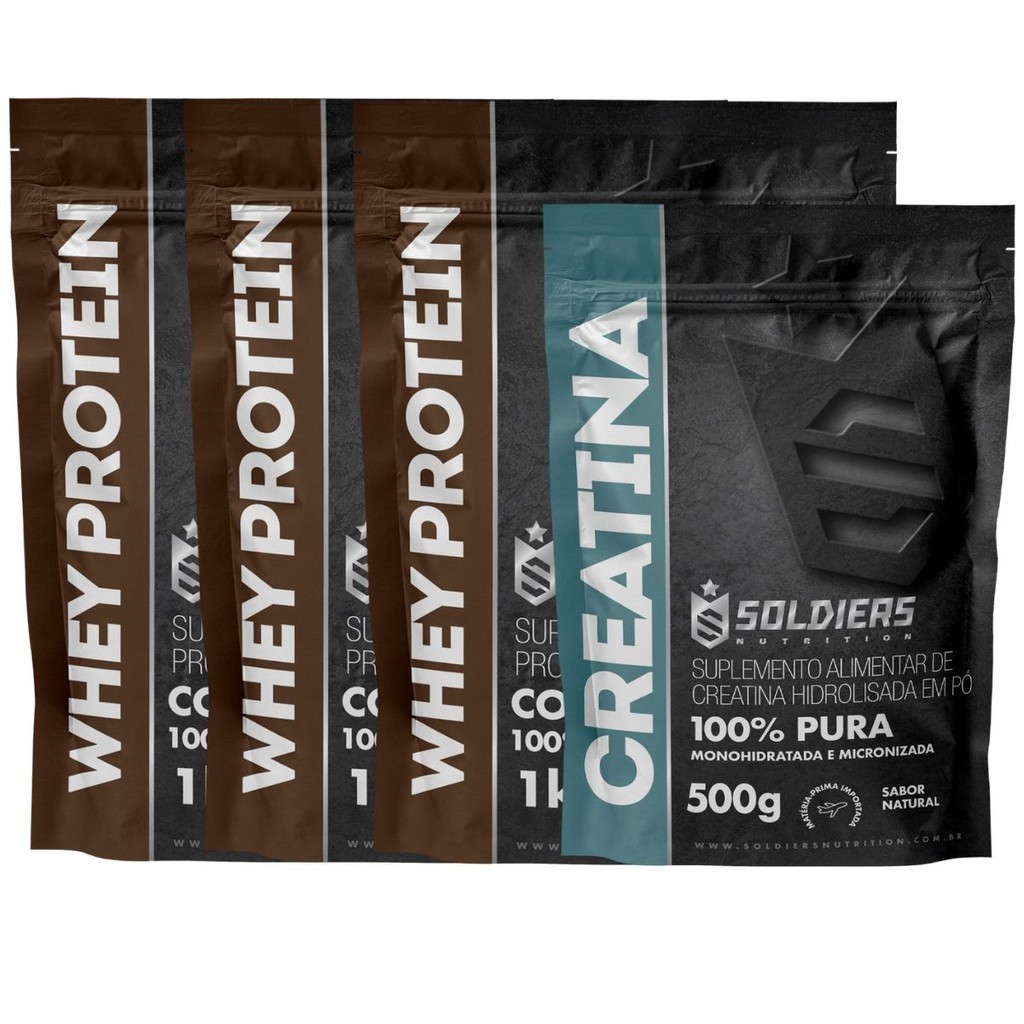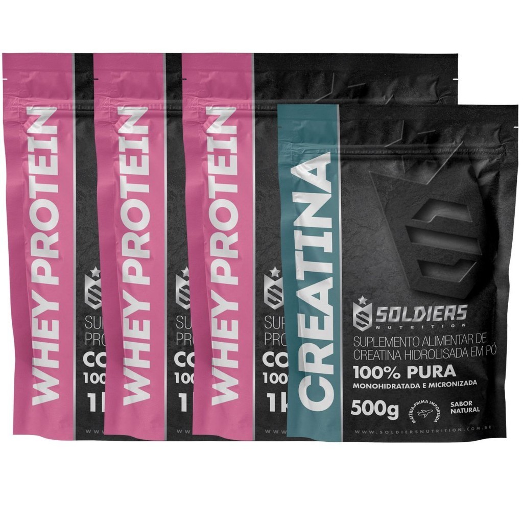 Kit: Whey Protein Concentrado 3kg + Creatina 500g Soldiers Nutrition Força Performance