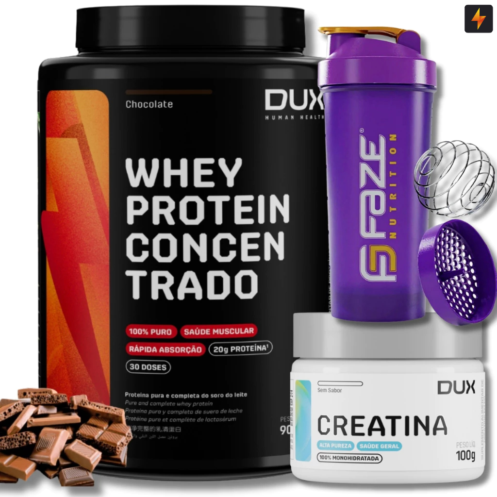 Kit Whey Protein Concentrado 900g + Creatina Monohidratada 100g Dux Human Health + Coqueteleira