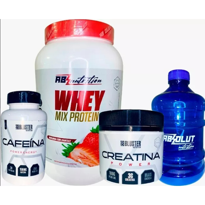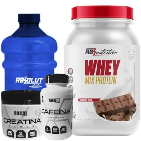 Ótimo custo benefício para você que deseja um combo para turbinar os seus treinos. Verão chegando e esse combo vai ser um aliado no seu projeto academia. Contém: 1 - WHEY MIX 900G, 1 CREATINA 100GRS BLUSTER 1 CAFEINA 30 CAPS BLUSTER 1 GALÃO 1L Escolha entre as opções de Sabores de Whey: Baunilha, Morango, Chocolate