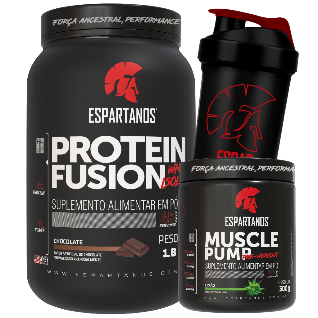 Kit Whey Protein Fusion 1800G + Pré Treino Muscle Pump 300G + Copo