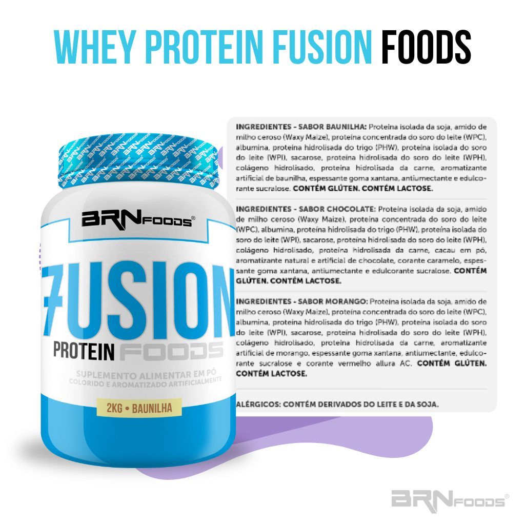Whey Protein Concentrado Fusion Protein Foods 900g - BRN Foods 💪 Principais Vantagens: 🏋️♂️ Diversidade Proteica 🌱 20g de Proteína por Dose 🥩 Baixa em Gorduras e Carboidratos 🚀 Aliado no Desenvolvimento Muscular 📈 Suplementação Perfeita ✅ Recomendações de Uso: Adicionar 40 g (4 colheres de sopa rasas) em 300 mL (1 ½ copo) de água. Bater no liquidificador ou coqueteleira por 20 segundos e consumir imediatamente após o preparo.