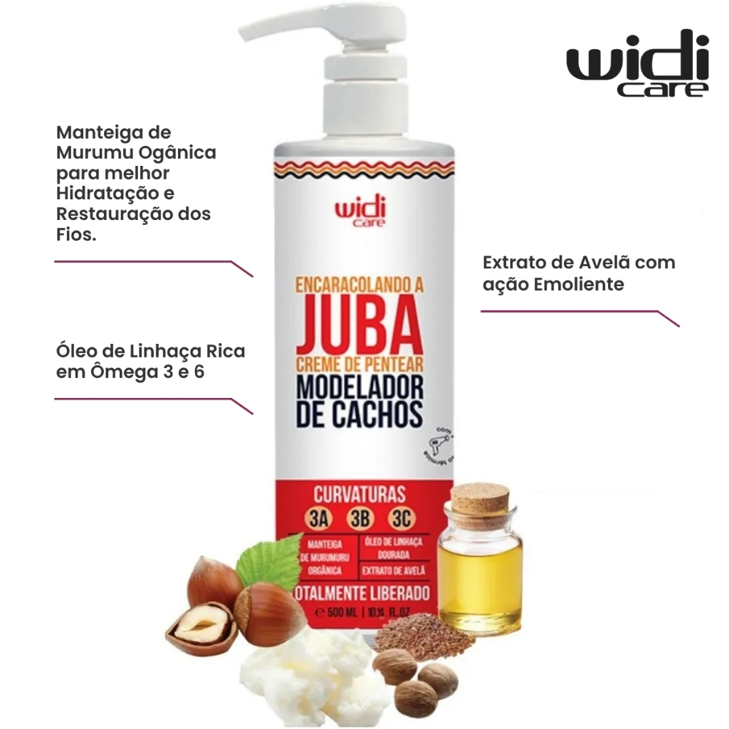 Primer Cosméticos. Realce o natural, brilhe com confiança! Cansados dessa história de controle dos cachos? A linha Juba traz para você, que é cacheada e ama sua cabeleira volumosa, o ENCARACOLANDO A JUBA CREME DE PENTEAR, que define, nutre, condiciona, hidrata e empodera suas madeixas com auxílio dos ativos: Manteiga de Murumuru Orgânica, Óleo de Linhaça Dourada e Extrato de Avelã. MARA, né? Agora solte sua juba, ame seus cachos e sinta-se plena!Ativos:Óleo de linhaça douradaExtrato de avelãManteiga de murumuru orgânica Como usar: Com o cabelo úmido, divida-o em mechas finas e inicie o processo pela parte da nuca para ficar mais fácil a aplicação.Coloque uma quantidade suficiente do ENCARACOLANDO A JUBA CREME DE PENTEAR nas mãos e aplique nos cabelos fazendo fitas em mechas finas.Repita esse processo por todo o cabelo e depois modele as mechas de baixo para cima para ajudar na definição.Deixe secar naturalmente ou com ajuda de um difusor. MODELANDO A JUBA - GELEIA DE ALTA DEFINIÇÃO é um produto projetado para atender às necessidades das pessoas cacheadas e crespas que desejam obter cachos altamente definidos e bem comportados. Esta geleia contém ativos que proporcionam hidratação e uma textura aprimorada aos cabelos, sem deixá-los com aspecto ressecado. É indicada para cabelos com as curvaturas 3A, 3B, 3C e 4A, 4B, 4C. Com a Geleia Juba, você pode soltar sua juba e conquistar uma definição incrível.Ativos:Óleo de linhaça dourada. Extrato de avelã. Óleo de coco. Como usar: Modo de uso 1:Após aplicar o Encrespando ou Encaracolando a Juba nos seus cabelos, distribua uma quantidade adequada da Geleia Juba nas palmas das mãos. Em seguida, aplique a geleia nos fios fazendo movimentos de fitas, apertando suavemente o cabelo. Deixe secar naturalmente ou com o auxílio do Mousse Criador de Cachos, se desejar. Modo de uso 2 (Day After): Com as pontas dos dedos formando uma pinça, aplique a Geleia Juba nos cachos que podem ter perdido a definição durante a noite. Aguarde um momento para que a geleia revitalize instantaneamente seus cachos. A Geleia Juba é uma aliada poderosa para manter seus cachos definidos e hidratados, proporcionando o visual desejado sem comprometer a saúde dos seus fios.