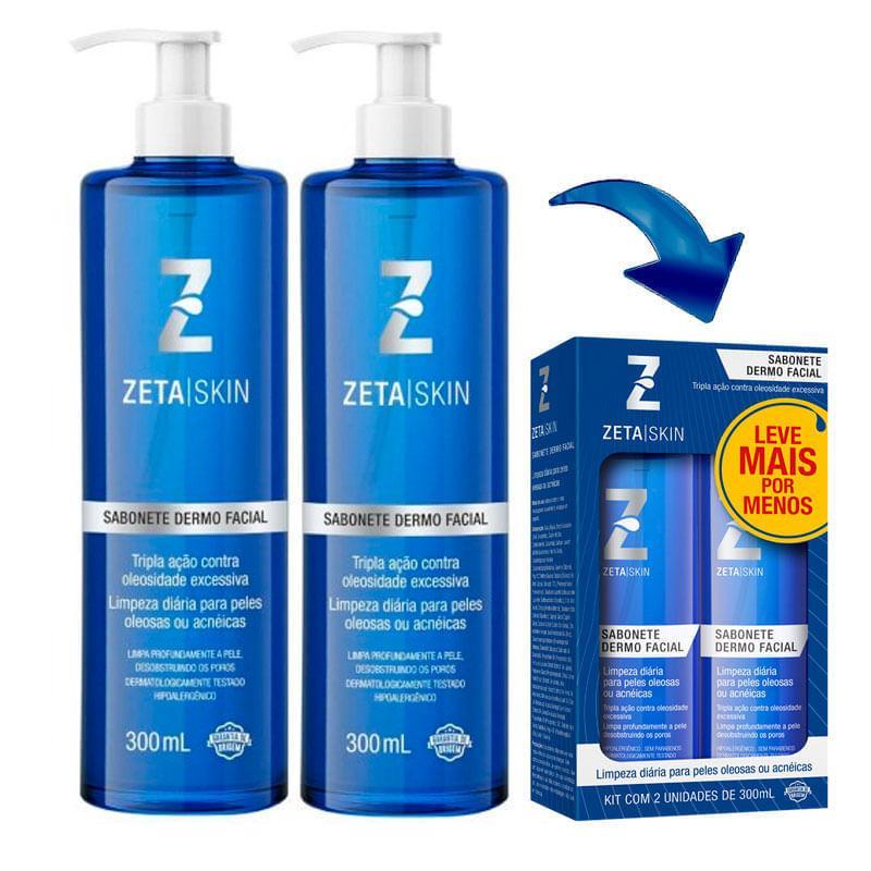 Kit Zeta Skin Sabonete Dermo Facial Peles Oleosas ou Acnéicas 2 Unidades 300ml Cada