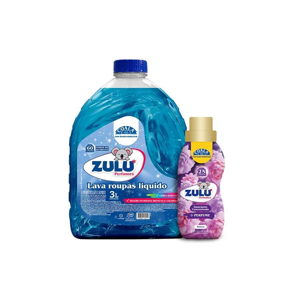 Kit Zulu Perfumes/Coala 1 Lava Roupas Liquido 3L+1 Amaciante concentrado 500ml-Místico