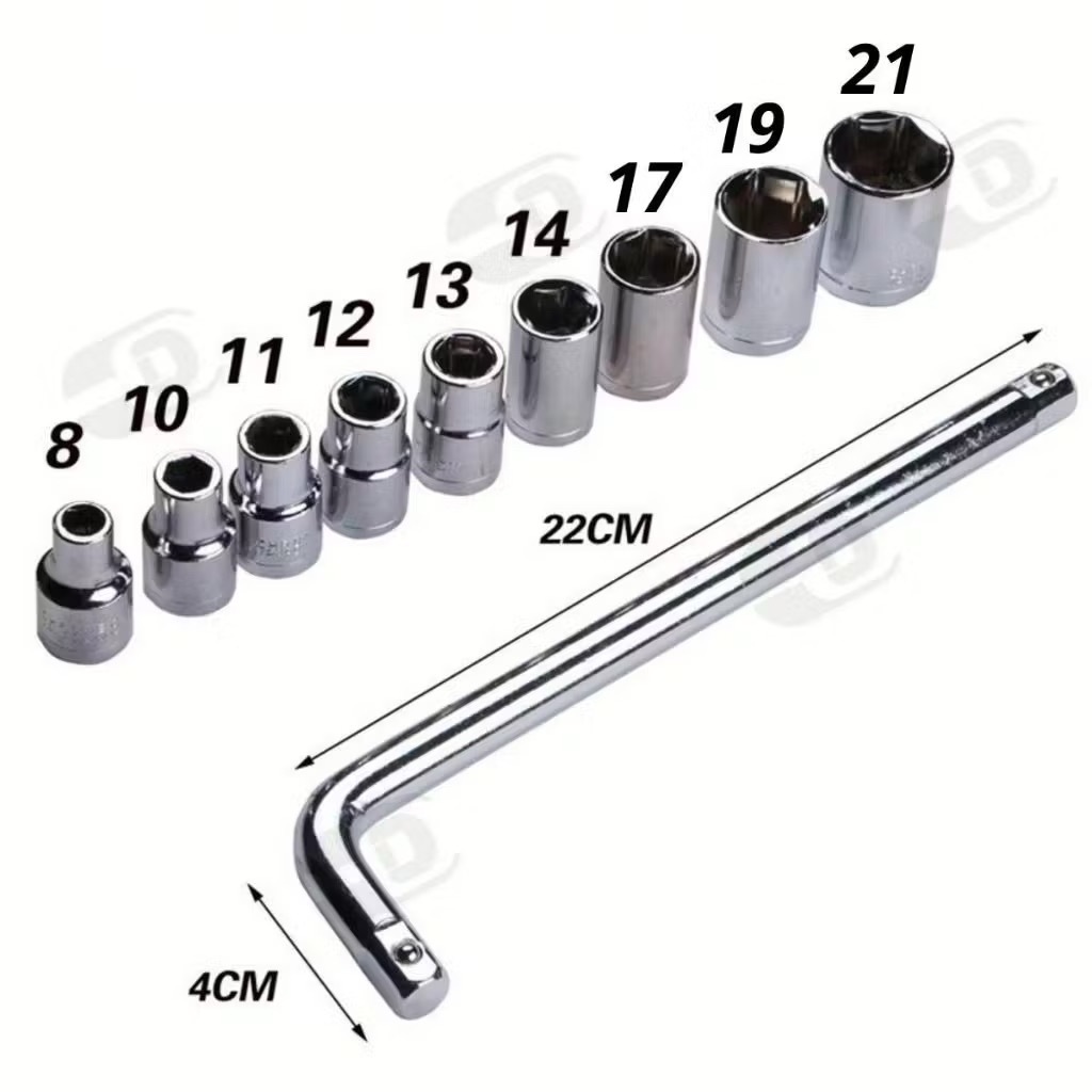 💠 ➡️ DISPONÍVEL EM ESTOQUE ⬅️ 💠 💠📦 APÓS A COMPRA SER APROVADA ENVIO O MAIS BREVE POSSÍVEL (DIAS ÚTEIS) 📦 💠 KIT10 Ferramentas c/10 Peças Chave L Soquete De Boca com Estojo São 9 Soquetes, chave em L e estojo para colocar as chaves! ½ polegada com 9 soquetes !. Não perca mais tempo e dinheiro com ferramentas que não duram! Invista em nosso jogo de soquetes e ferramentas diversas em aço cromo vanádio. Com a resistência e durabilidade proporcionadas pelo aço cromo vanádio, essas ferramentas são ideais para aperto e desaperto de porcas e parafusos, entre outros usos pessoais. Além disso, elas vêm acondicionadas em uma maleta de plástico ABS para maior organização e facilidade de transporte. Tenha sempre à mão ferramentas de qualidade para realizações domésticas e reparos pequenos ou médios, adquira agora o seu jogo de soquetes e ferramentas diversas em aço cromo vanádio! Aplicação: - O jogo de chaves é ideal para residências🏘️, veículos para reparo automotivos 🚗🔧, oficinas🏭, manutenção automotiva 🚘🚧. Itens inclusos: 01 - Chave L (25 cm) 01 - Soquete de boca 8 01 - Soquete de boca 10 01 - Soquete de boca 11 01 - Soquete de boca 12 01 - Soquete de boca 13 01 - Soquete de boca 14 01 - Soquete de boca 17 01 - Soquete de boca 19 01 - Soquete de boca 21