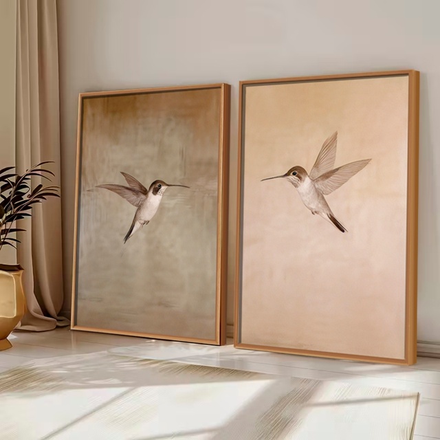 Kit2 QUADROS decorativo com MOLDURA CAIXA ALTA grande 41x61 cm Beija-Flor, Arte Minimalista Retrô para Decoração Rústica