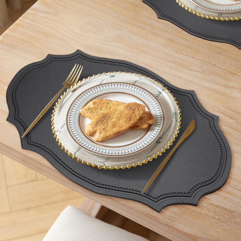 KIT4 Europeu Jogo Americano Preto PU Kit Mesa Posta Janta B1064
