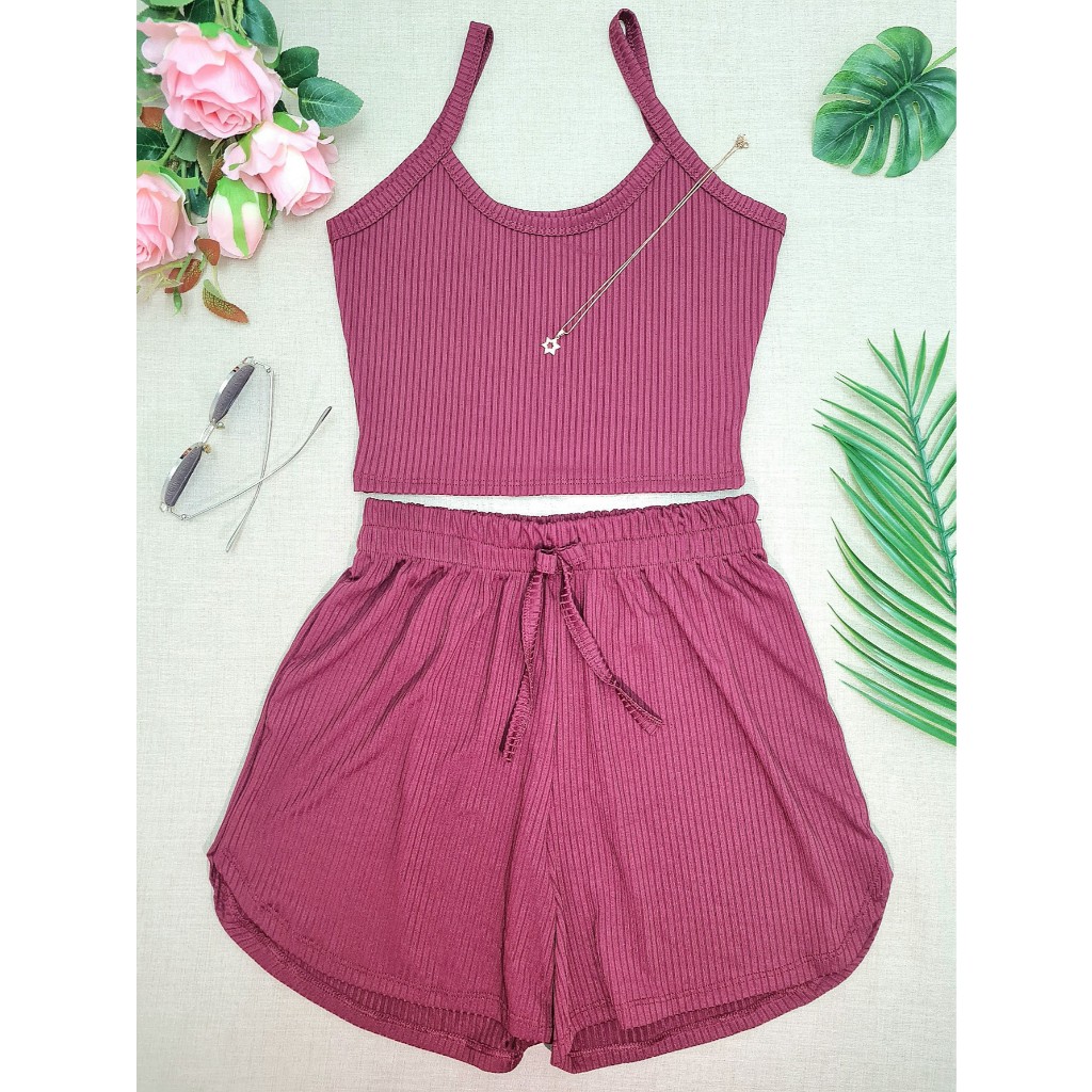 KIT5 Conjuntos Top De Alcinha básico Regata+Short Curto Malha Canelada 5 Cores