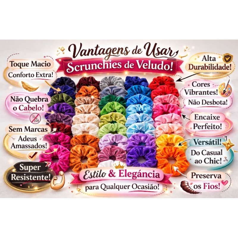 kit50 unid. Xuxinhas Scrunchies de Veludo elástico de cabelo-DIVERSAS cores