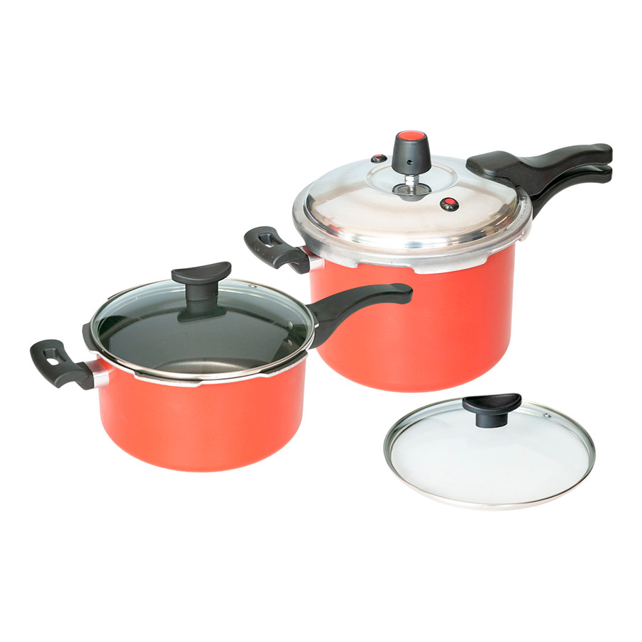Kits 2 Panelas De Pressão Fechamento Externo 4,5l E 3l Vermelha Com Tampa de Vidro