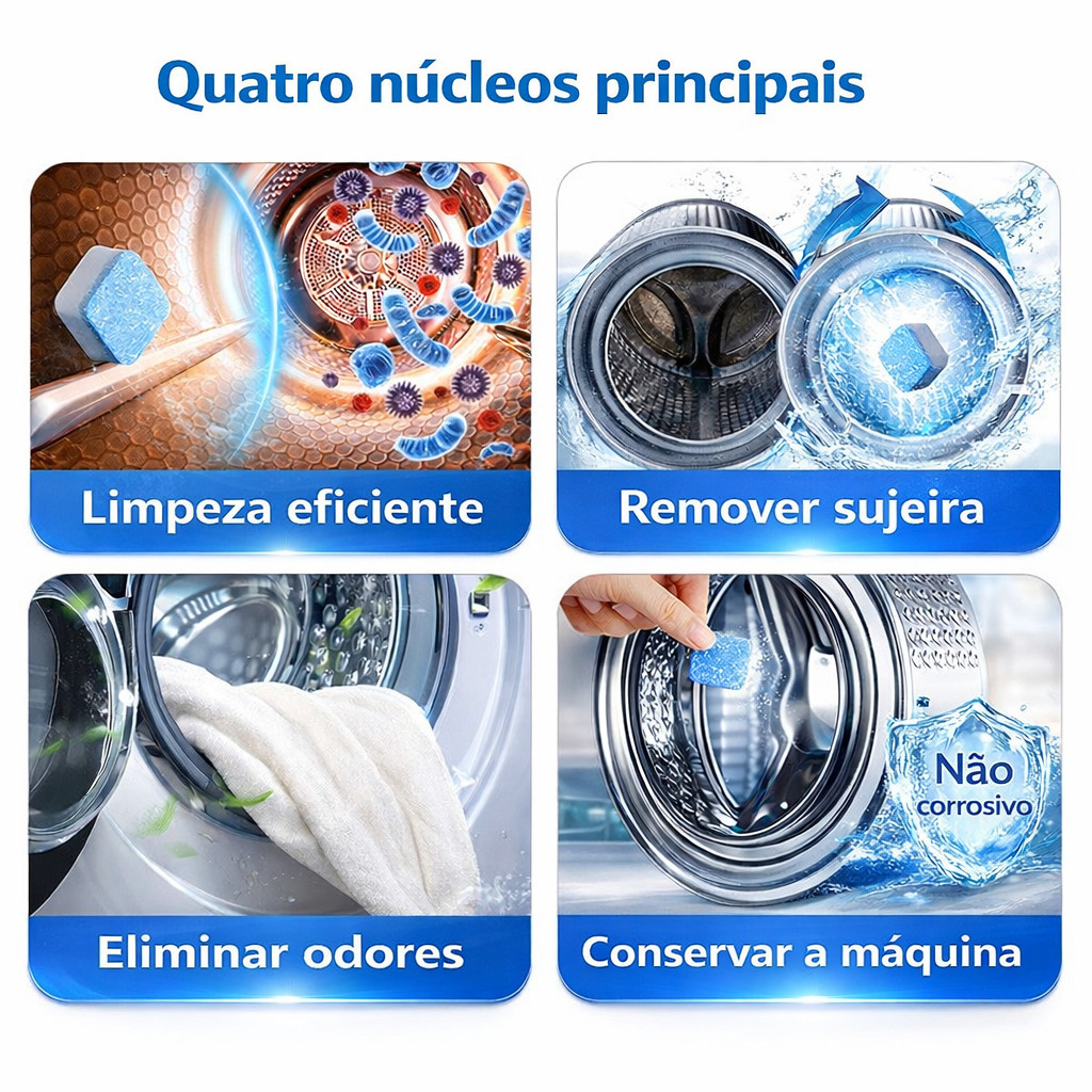 Pastilhas Efervescentes para Limpeza de Máquina de Lavar – Kit com 24 Unidades Limpeza Profunda para sua Máquina de Lavar Com o uso diário, a máquina de lavar acumula sujeira, resíduos de sabão, gordura e bactérias, que podem causar mau cheiro e até afetar a limpeza das roupas. As Pastilhas Efervescentes de Limpeza para Máquina de Lavar ajudam a remover sujeira acumulada e manter sua máquina limpa e higienizada. Basta colocar a pastilha no tambor e deixar agir. Principais Benefícios Limpeza Profunda Remove resíduos de sabão, sujeira acumulada e impurezas dentro da máquina. Elimina Mau Cheiro Ajuda a eliminar odores causados por umidade e resíduos acumulados. Fácil de Usar Basta colocar a pastilha dentro da máquina e iniciar o ciclo de lavagem. Dissolução Rápida Pastilha efervescente que dissolve rapidamente e limpa áreas internas da máquina. Compatível com Diversos Modelos Pode ser utilizada em: Máquina de lavar automática Máquina de lavar semi automática Lavadora de tambor frontal Lavadora de abertura superior Como Usar Coloque 1 pastilha dentro do tambor da máquina vazia Inicie o ciclo de lavagem normal Deixe a pastilha dissolver completamente Após o ciclo, sua máquina estará limpa e pronta para uso Recomendado utilizar 1 a 2 vezes por mês para manutenção. Conteúdo da Embalagem 24 Pastilhas Efervescentes para Limpeza de Máquina de Lavar Especificações do Produto Quantidade: 24 unidades Tipo: Pastilha efervescente Função: Limpeza interna da máquina de lavar Uso recomendado: manutenção e limpeza profunda Dicas de Uso Para melhores resultados: • Utilize regularmente para evitar acúmulo de resíduos • Ideal para manutenção mensal da máquina • Ajuda a prolongar a vida útil da lavadora Observações Importantes Não misturar com outros produtos químicos Utilizar somente para limpeza de máquinas de lavar Manter fora do alcance de crianças