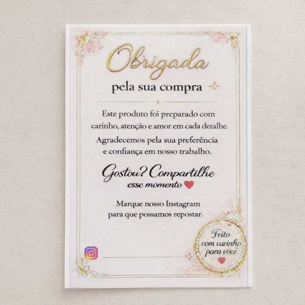Kits 50/100 Folhetos Agradecimento ao Cliente Obrigada pela Compra Valorize sua Marca